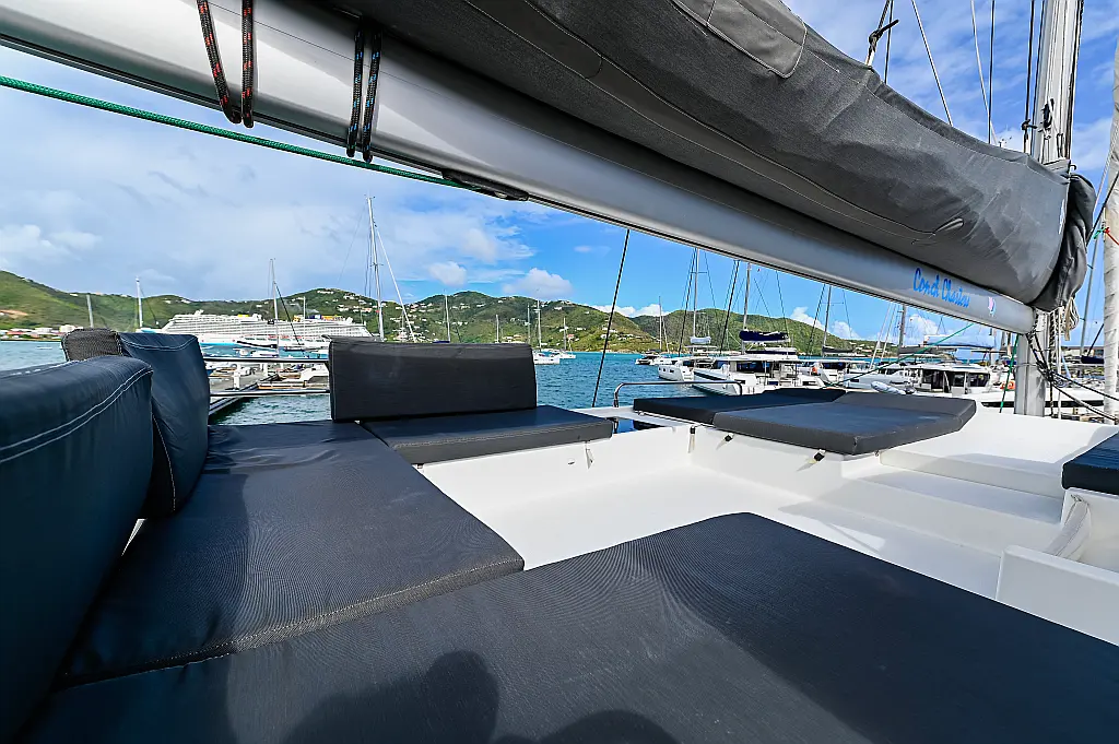 Meet Soleil Rae, our Fountaine Pajot Saba 50 (Owner's version). She is well-light, spacious, and comfortable. She offers 4 Double Cabins and 1 Super Single Cabin, each with its own electric head. Full air-conditioning with generator keeps everyone cool, and there’s a cockpit fridge plus an ice maker to keep the sundowners flowing.
