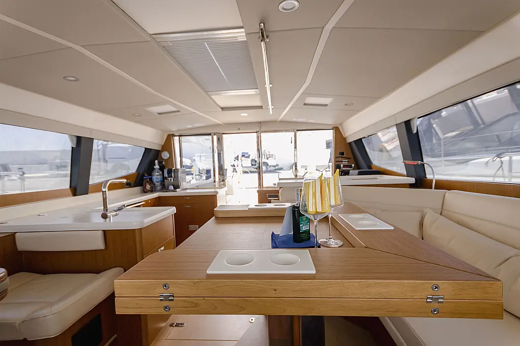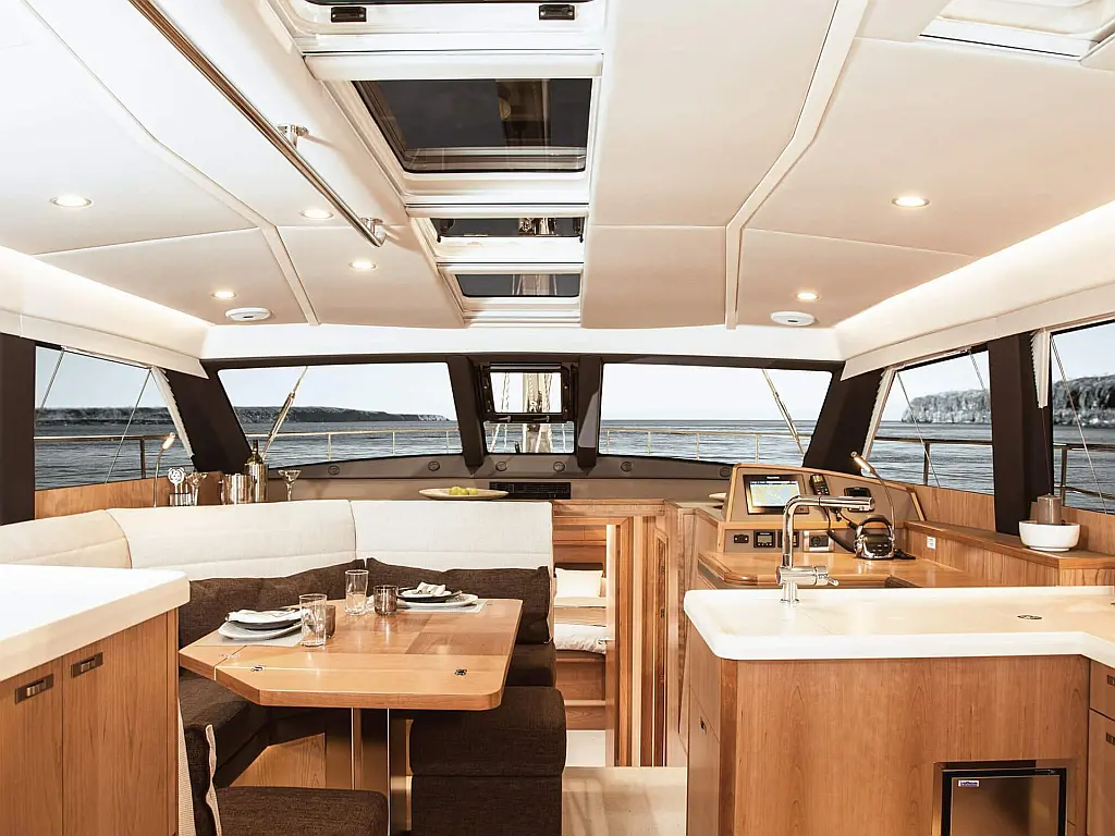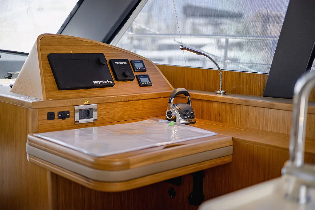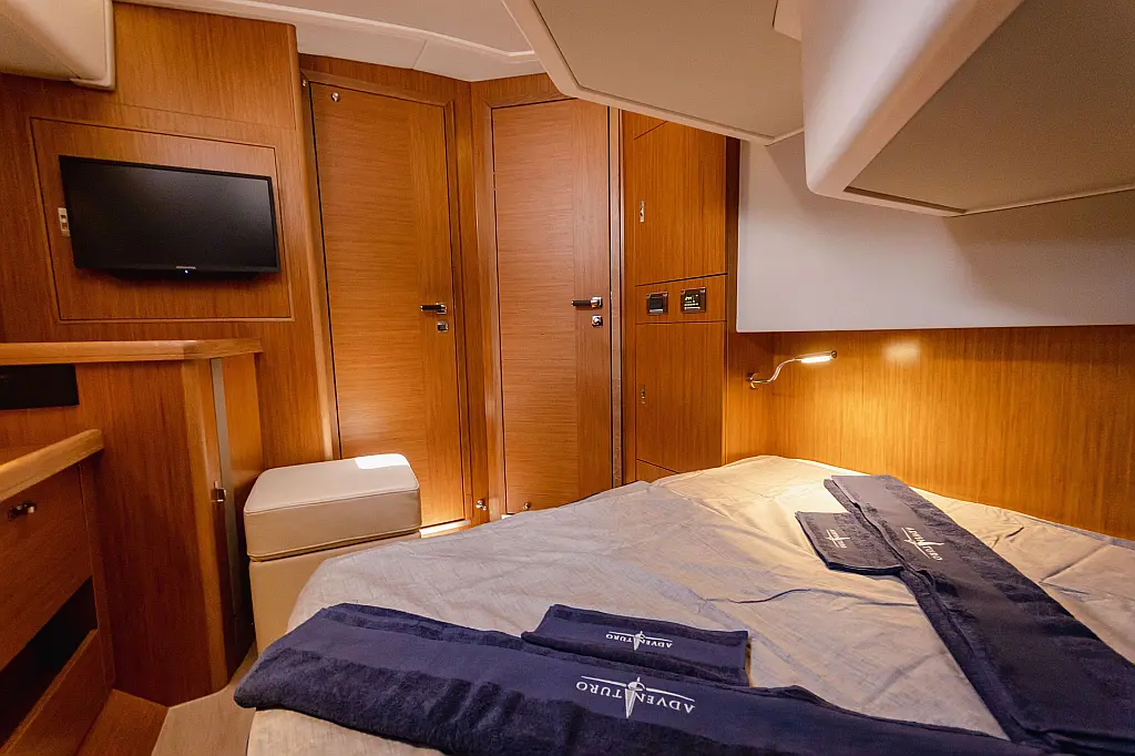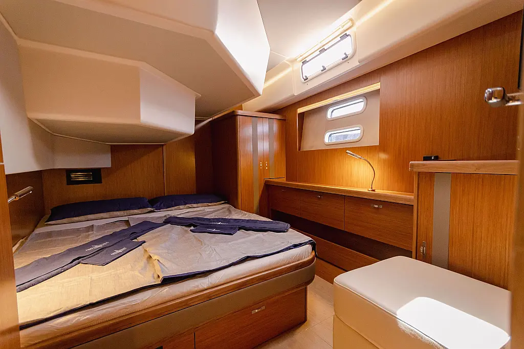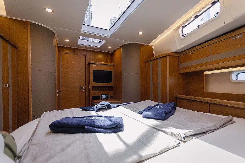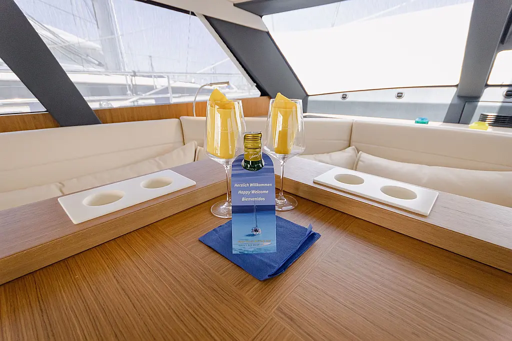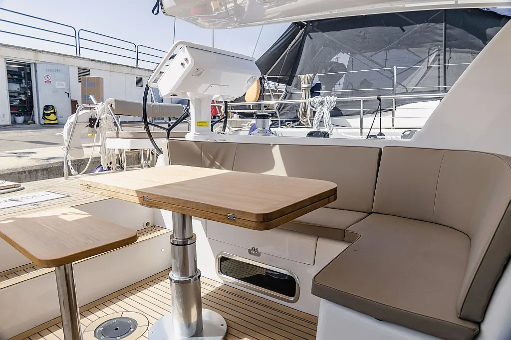 Refrigerator , Wi-Fi & Internet , Heating , Ice maker , Coffee maker , Air condition , Electric toilet , Bimini , Dinghy , Holding tank , Sprayhood , Cockpit cushions , Electric winches , Generator , Solar Panels , Teak Cockpit , Teak deck