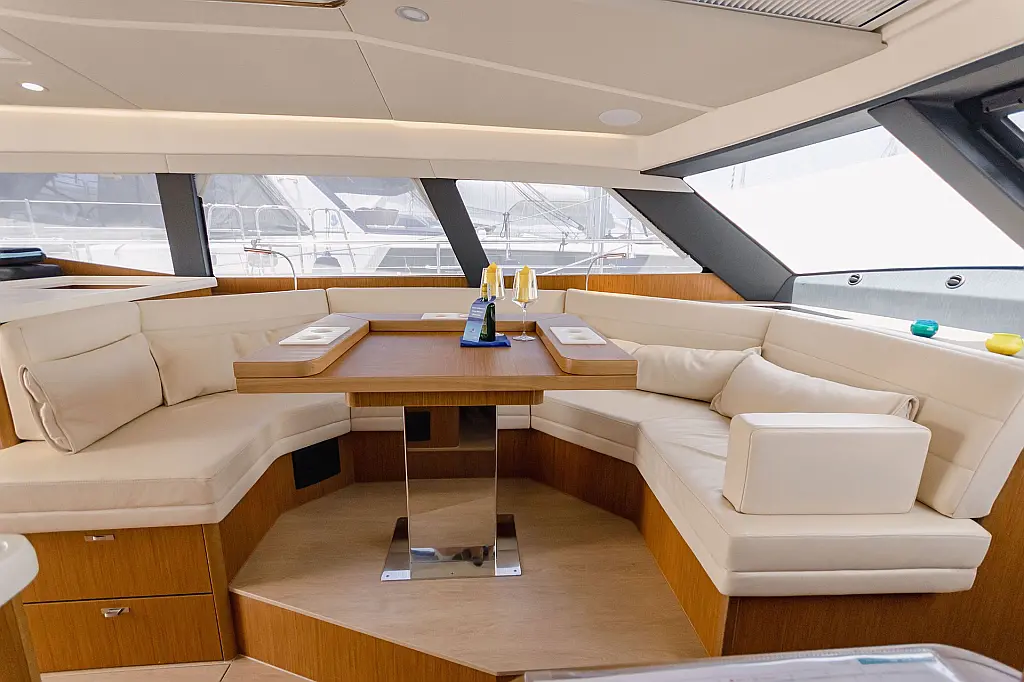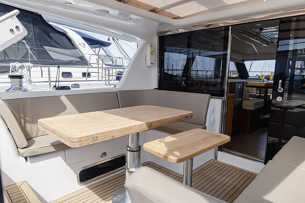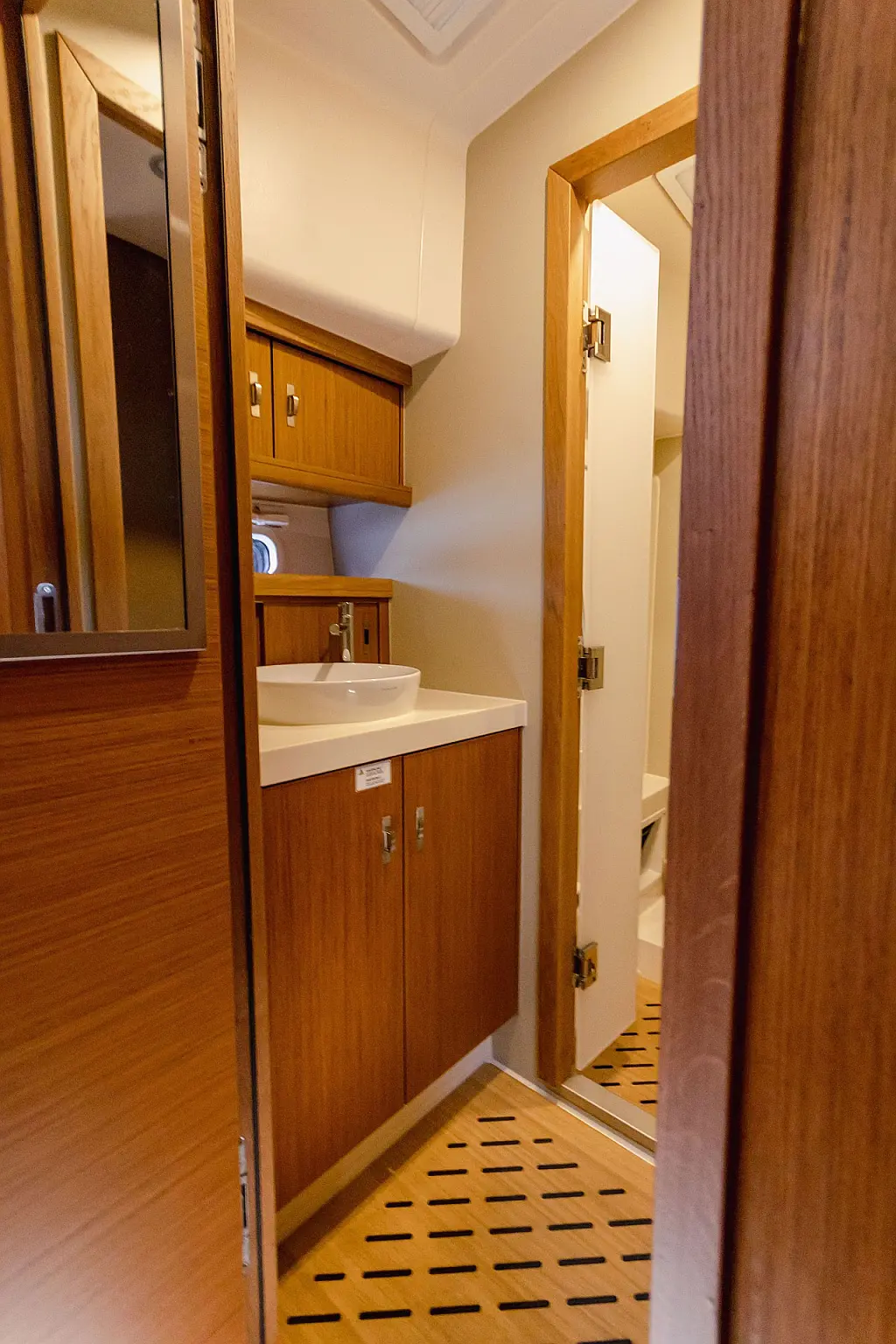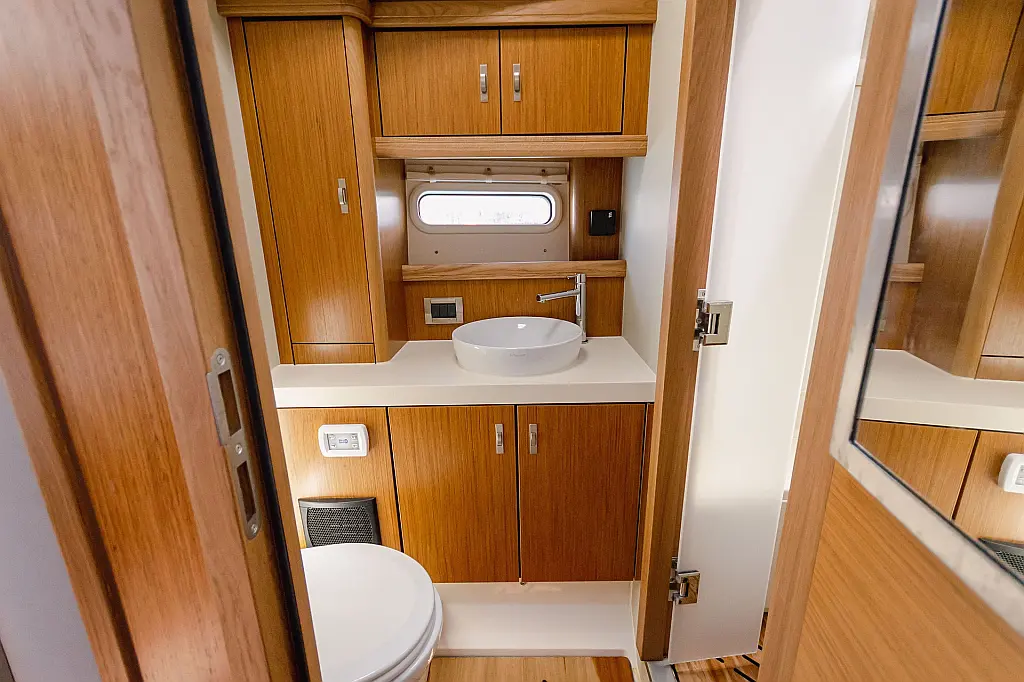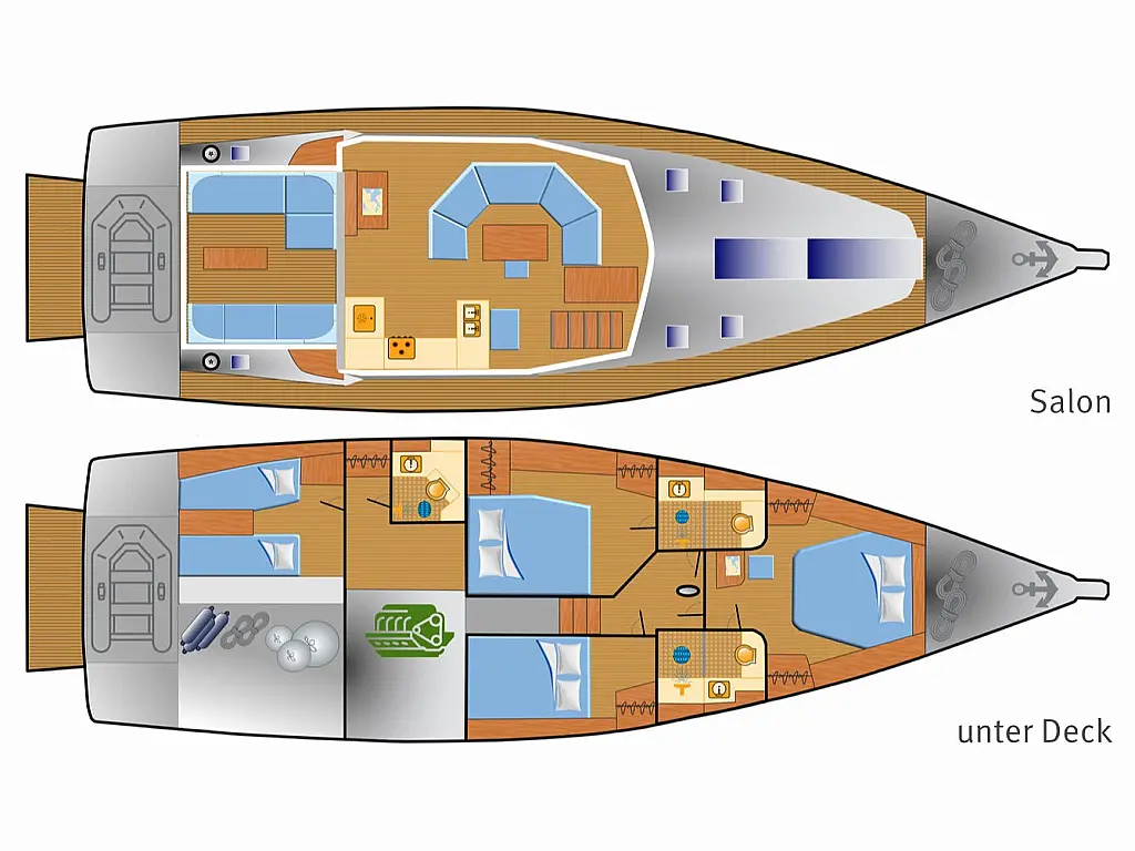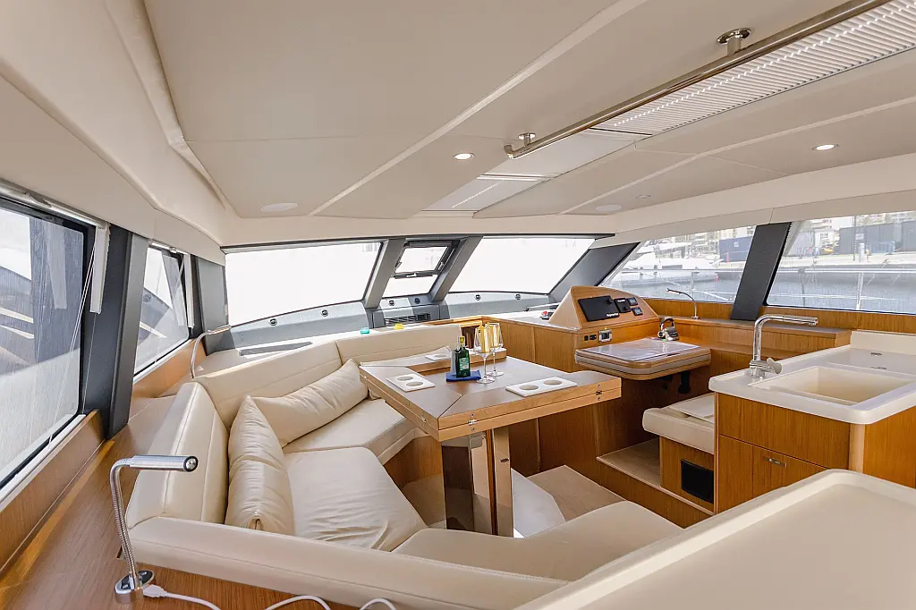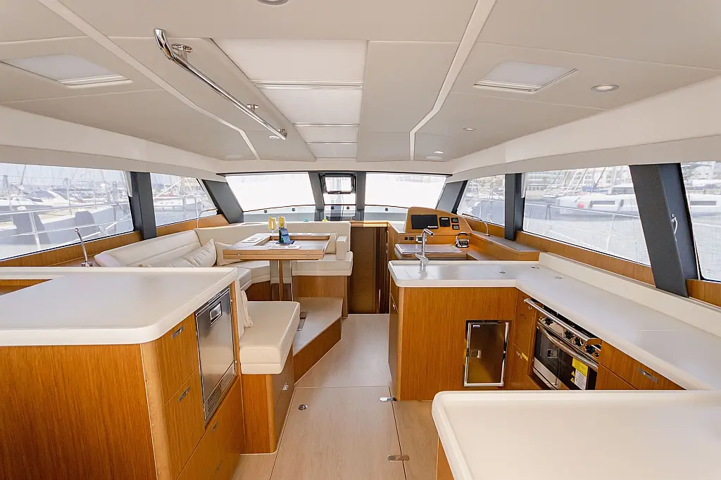 Refrigerator , Wi-Fi & Internet , Heating , Ice maker , Coffee maker , Air condition , Electric toilet , Bimini , Dinghy , Holding tank , Sprayhood , Cockpit cushions , Electric winches , Generator , Solar Panels , Teak Cockpit , Teak deck
