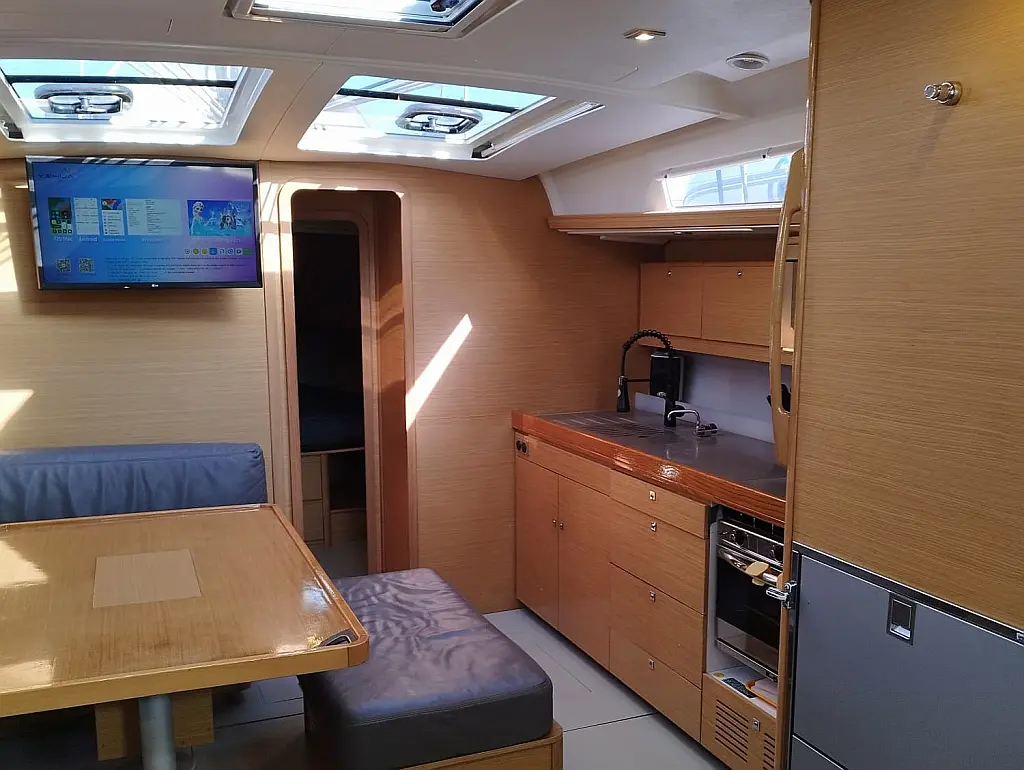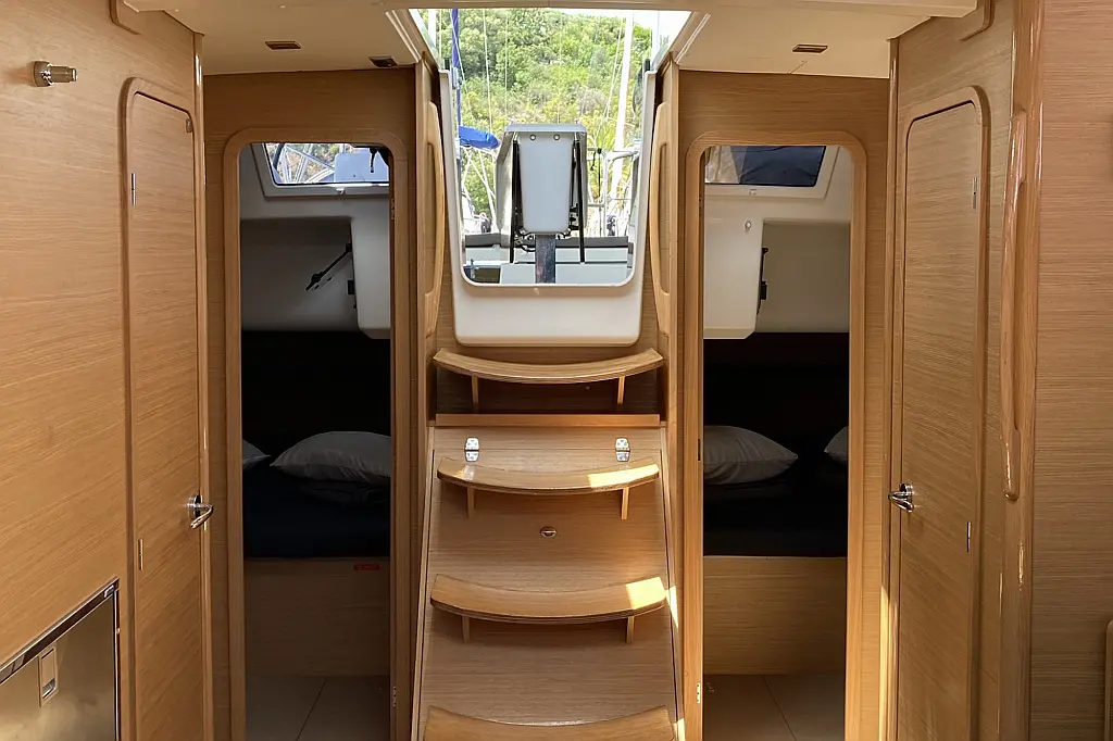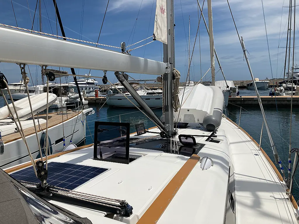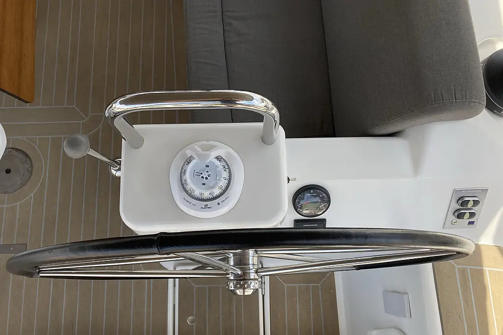 Teak Cockpit , Cockpit cushions , Barbecue grill in cockpit , Refrigerator , Electric toilet , Electric winches , Hydraulic gangway , Inverter , Swimming platform , Solar Panels