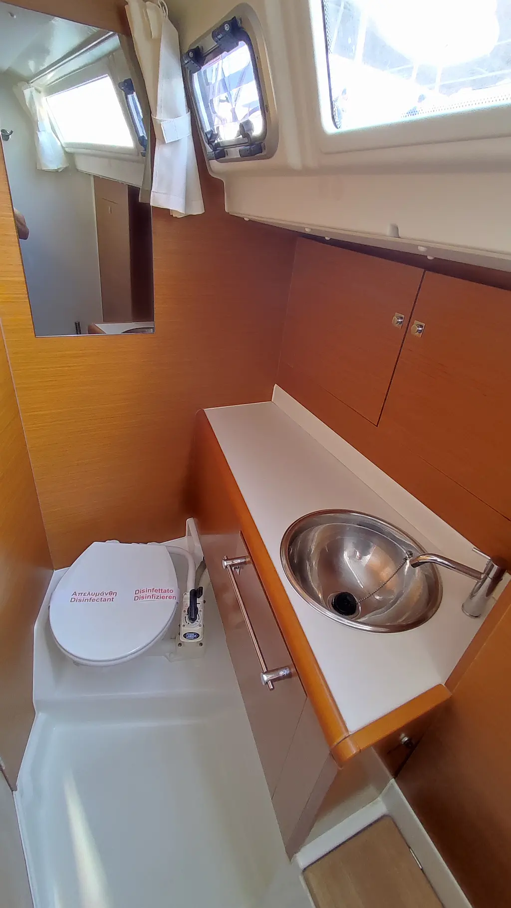 Cockpit speakers , Cockpit cushions , Refrigerator , Teak Cockpit , Swimming platform , Holding tank , Sprayhood , Dinghy , Bimini , Solar Panels , Inverter
