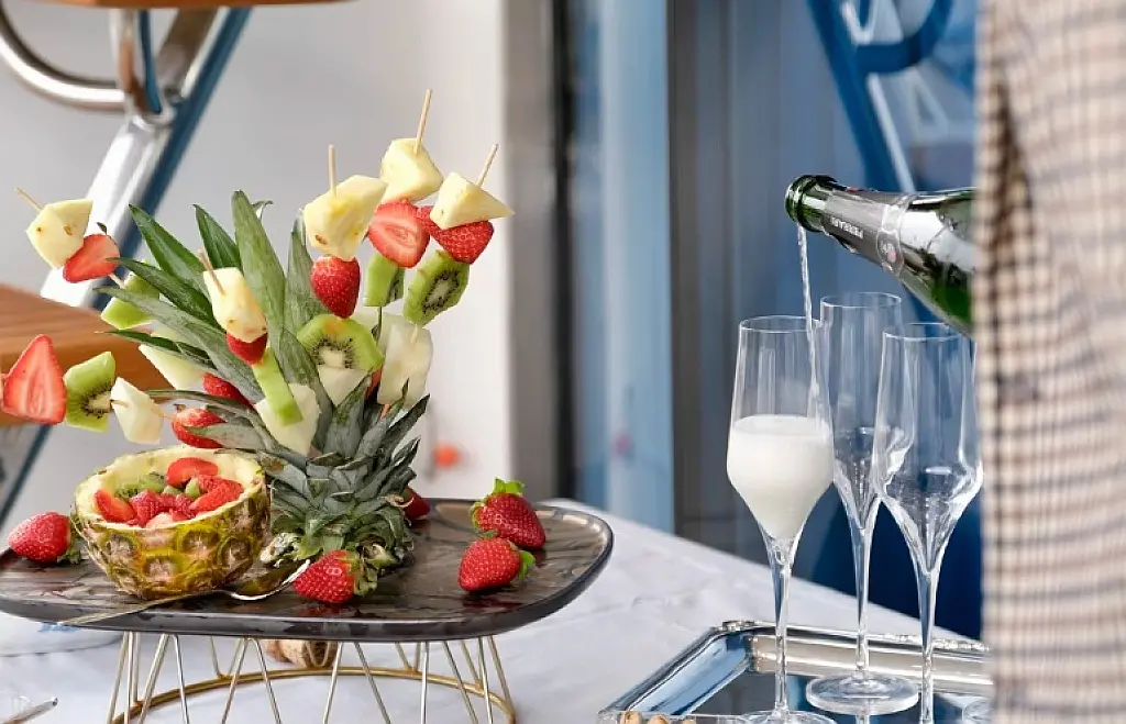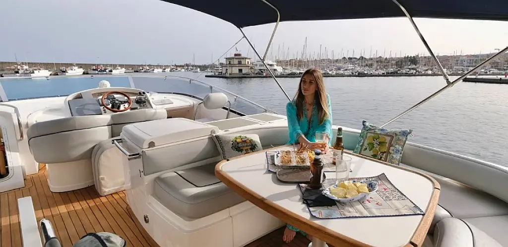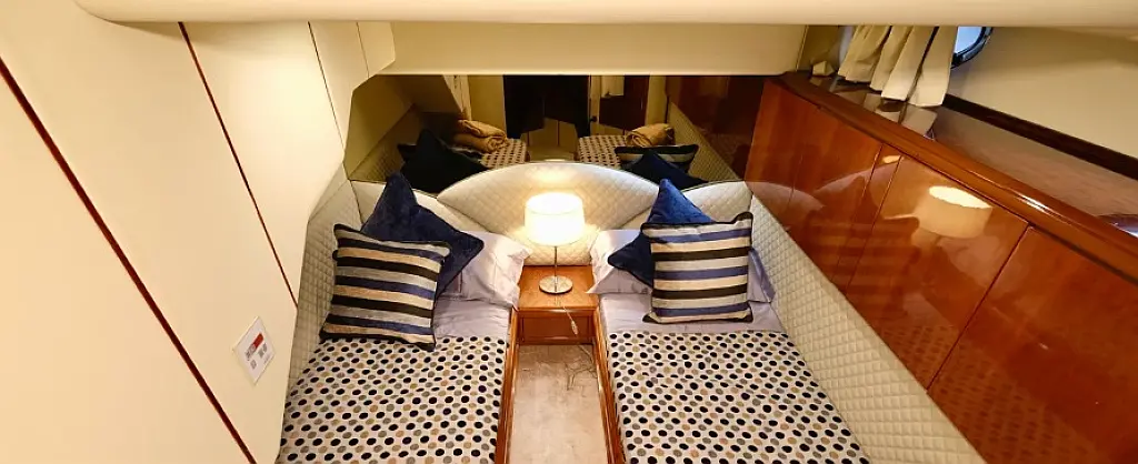 Generator , Refrigerator , Coffee maker , Ice maker , Air condition , Heating , Inverter , Teak deck , Bimini