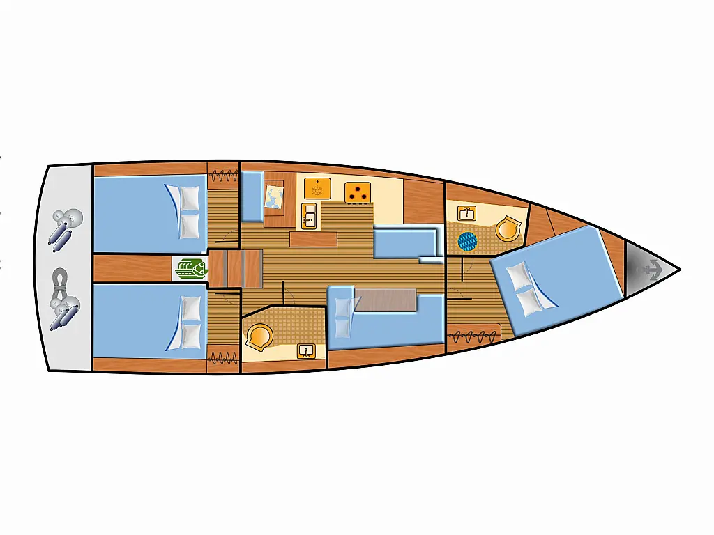 Refrigerator , Wi-Fi & Internet , Bimini , Dinghy , Holding tank , Sprayhood , Cockpit cushions , Solar Panels , Teak Cockpit
