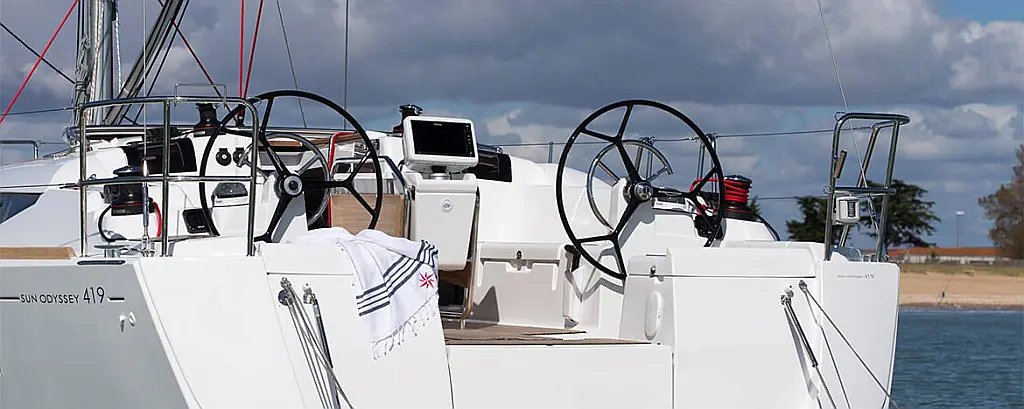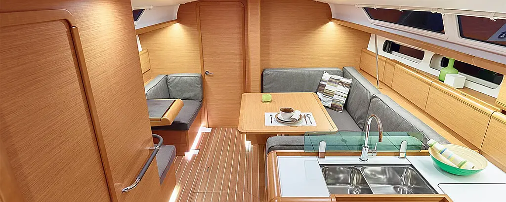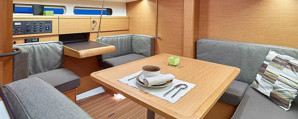 Dinghy , Outboard engine , Sprayhood , Bimini , Teak Cockpit , Cockpit cushions , Coffee maker , Refrigerator , Holding tank , Solar Panels , Cockpit speakers
