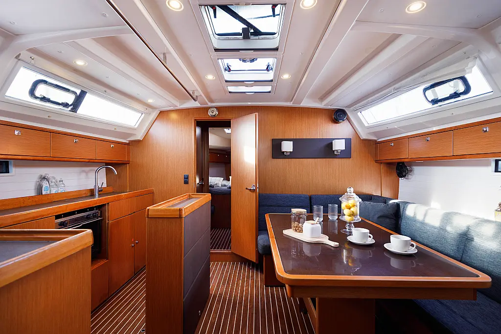 Electric toilet , Solar Panels , Bimini , Teak Cockpit , Cockpit cushions , Sprayhood , Cockpit speakers , Dinghy , Outboard engine , Coffee maker , Refrigerator