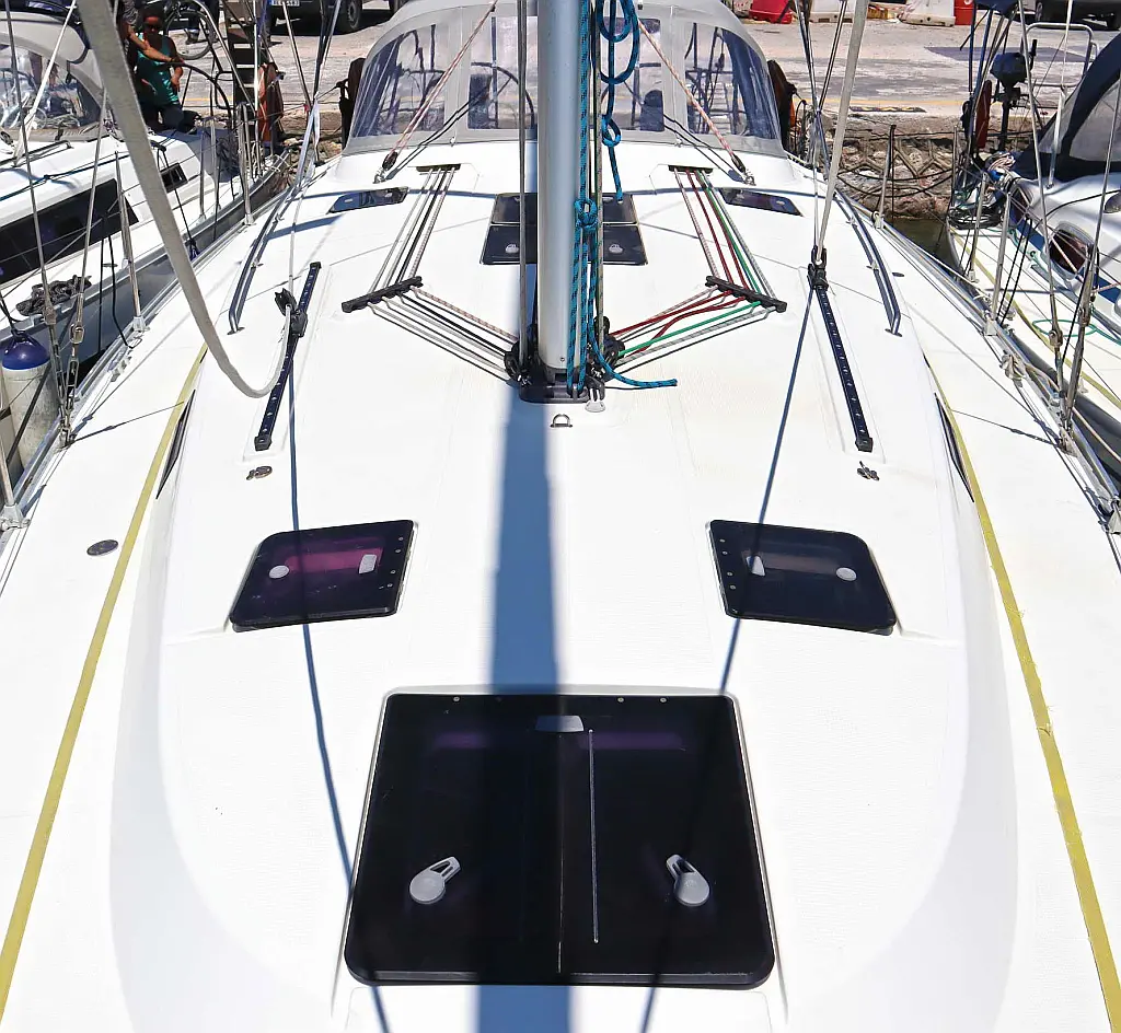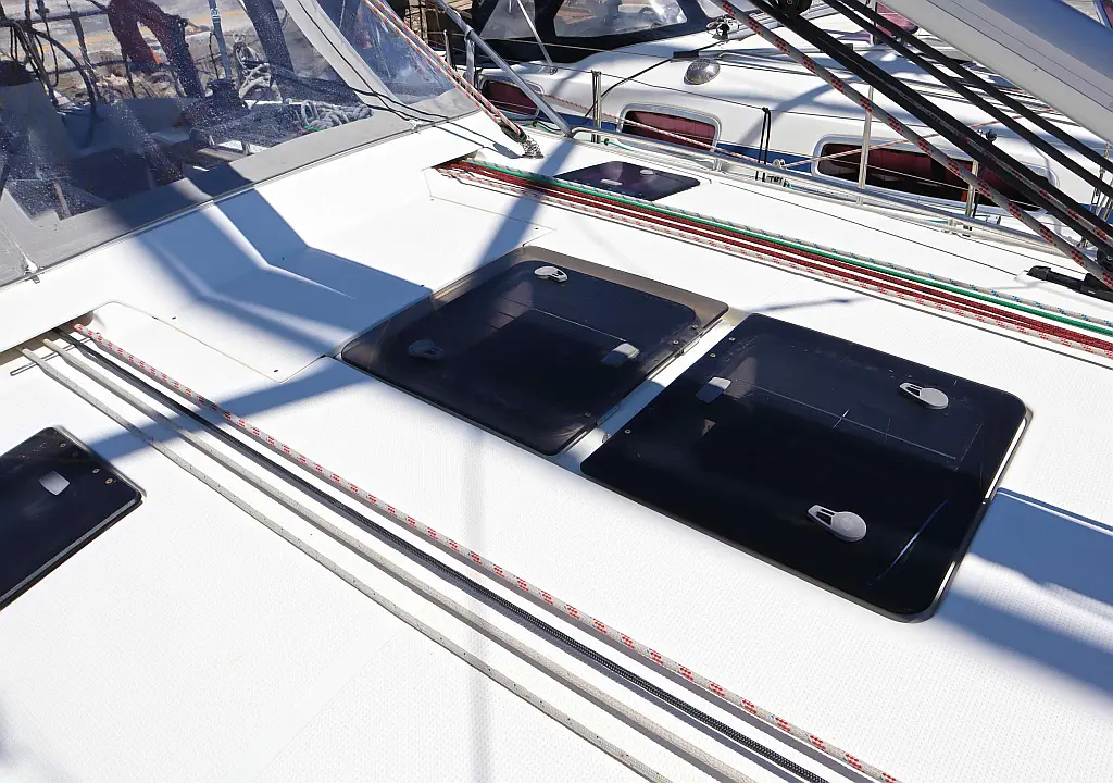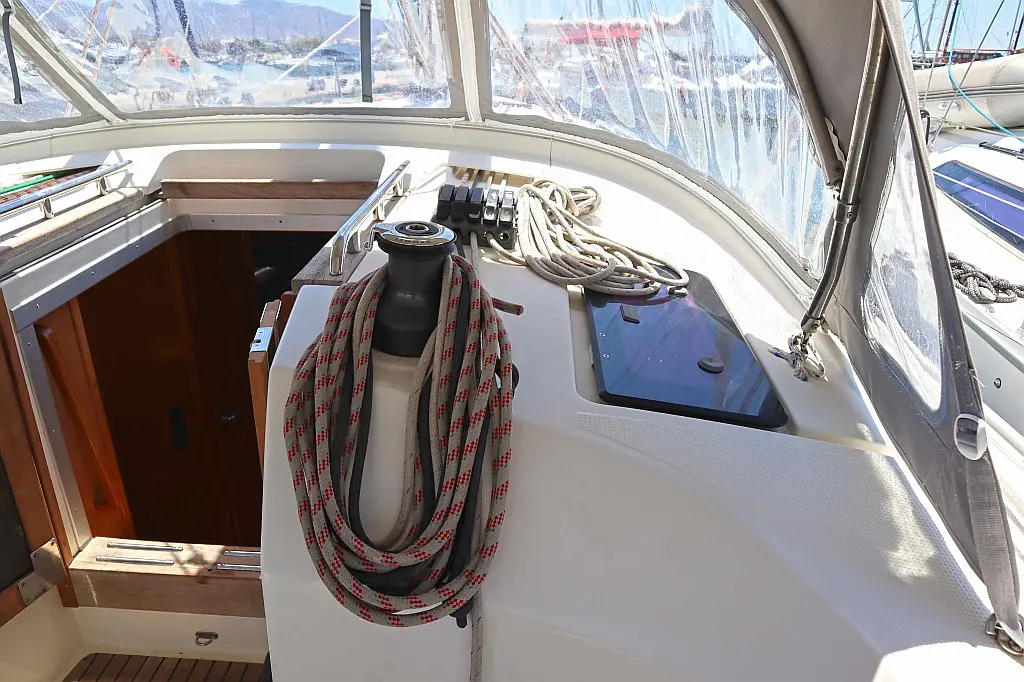 Sprayhood , Bimini , Cockpit speakers , Holding tank , Refrigerator , Swimming platform , Cockpit cushions , Electric toilet , Solar Panels