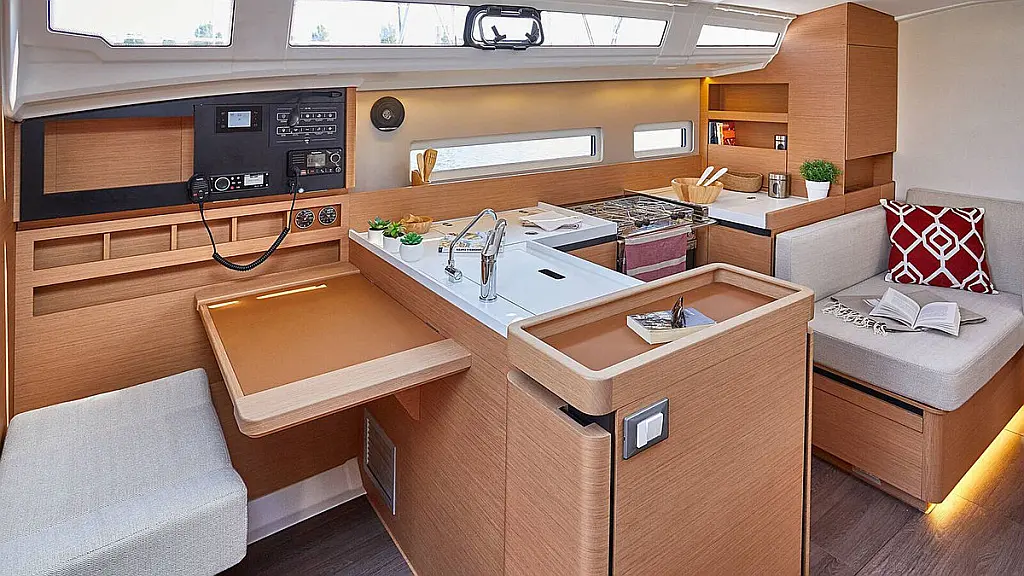 Refrigerator , Coffee maker , Bimini , Cockpit speakers , Cockpit cushions , Dinghy