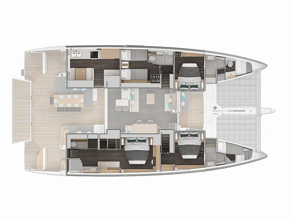 Air condition , Dinghy , Water maker , Barbecue grill in cockpit , Electric toilet , Swimming platform , Inverter , Ice maker , Wi-Fi & Internet