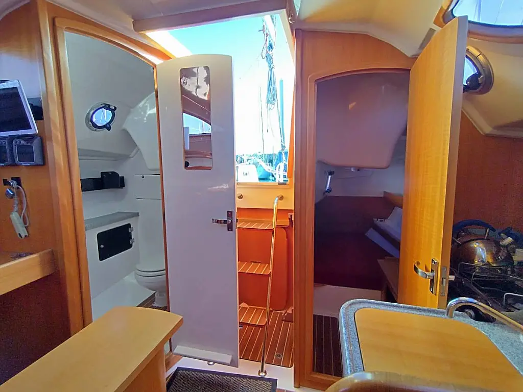 The marina of Saint-Quay-Portrieux is easily accessible: - Saint-Brieuc is 2h15 by TGV from Paris, followed by a 25-minute bus or taxi ride. - Free and secure parking is available right in front of the rental pontoon. Our clients can load and unload their car directly in front of the pontoon. A deep-water port with a 180° navigation program for all wind directions. - Saint-Quay-Portrieux is a deep-water port. - Arrivals and departures possible 7 days a week, 24 hours a day. - Navigation options regardless of wind direction: * Chausey (41 nm) * Channel Islands: Jersey, Guernsey, Sark... (45 nm) * Bréhat Island (15 nm) * Saint-Malo, Granville, Mont Saint-Michel (35-45 nm) * 7 islands, Pink Granite Coast, Perros-Guirec, Ploumanac'h (35 nm) * Aber Wrac'h (90 nm) * Batz Island (65 nm) * Isle of Wight (130 nm) * Scilly Isles (160 nm) * With strong winds: river itineraries: - The Trieux (Lézardrieux, Château de la Roche-Jaudy) - The Jaudy (Tréguier) Free Wi-Fi is available in the port for all our clients. The port of Saint-Quay-Portrieux offers assistance for port maneuvers. The mooring at Saint-Quay-Portrieux is included for the entire rental period. --- The night on board before check-in is included. ---