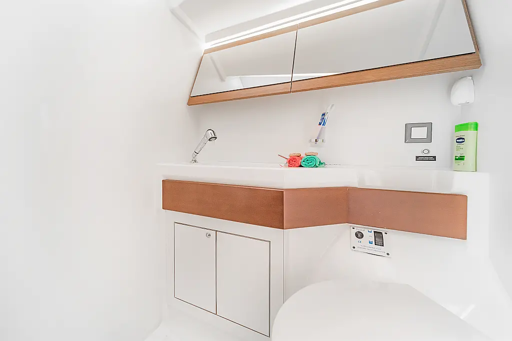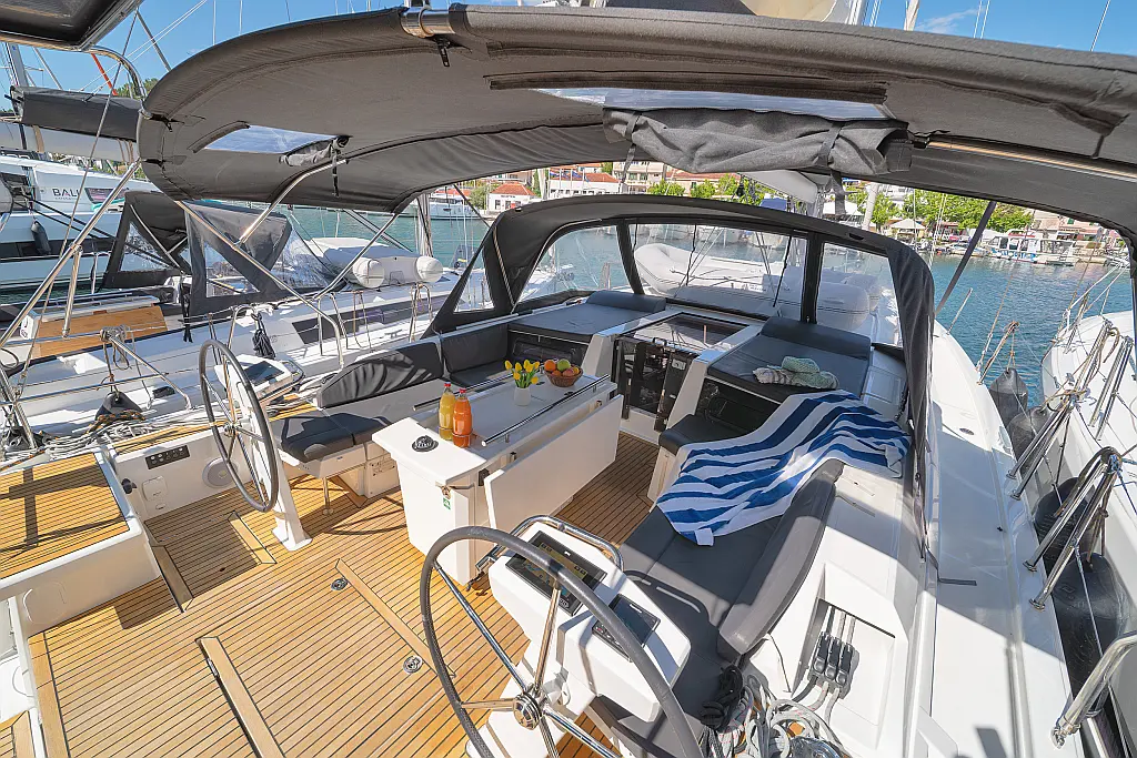 Cockpit cushions , Sprayhood , Bimini , Wi-Fi & Internet , Holding tank , Outboard engine , Heating , Inverter , Electric toilet , Refrigerator , Dinghy , Solar Panels , Cockpit speakers