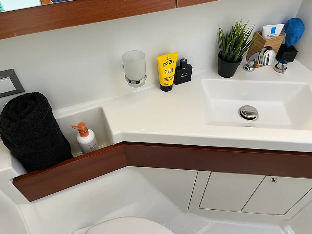 Electric toilet , Solar Panels , Bimini , Cockpit speakers , Dinghy , Refrigerator , Sprayhood