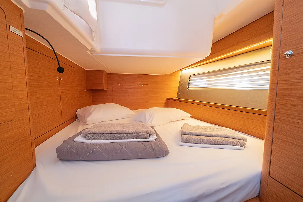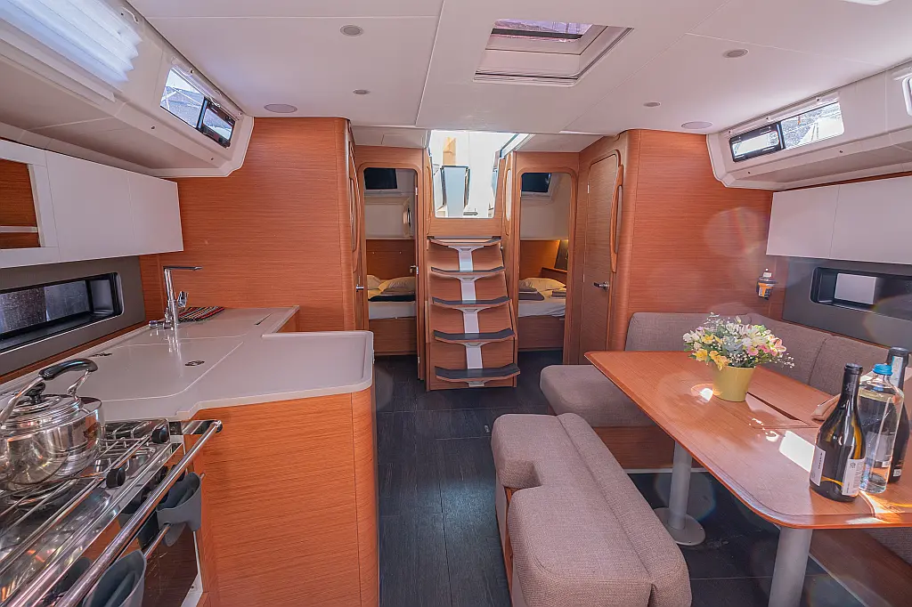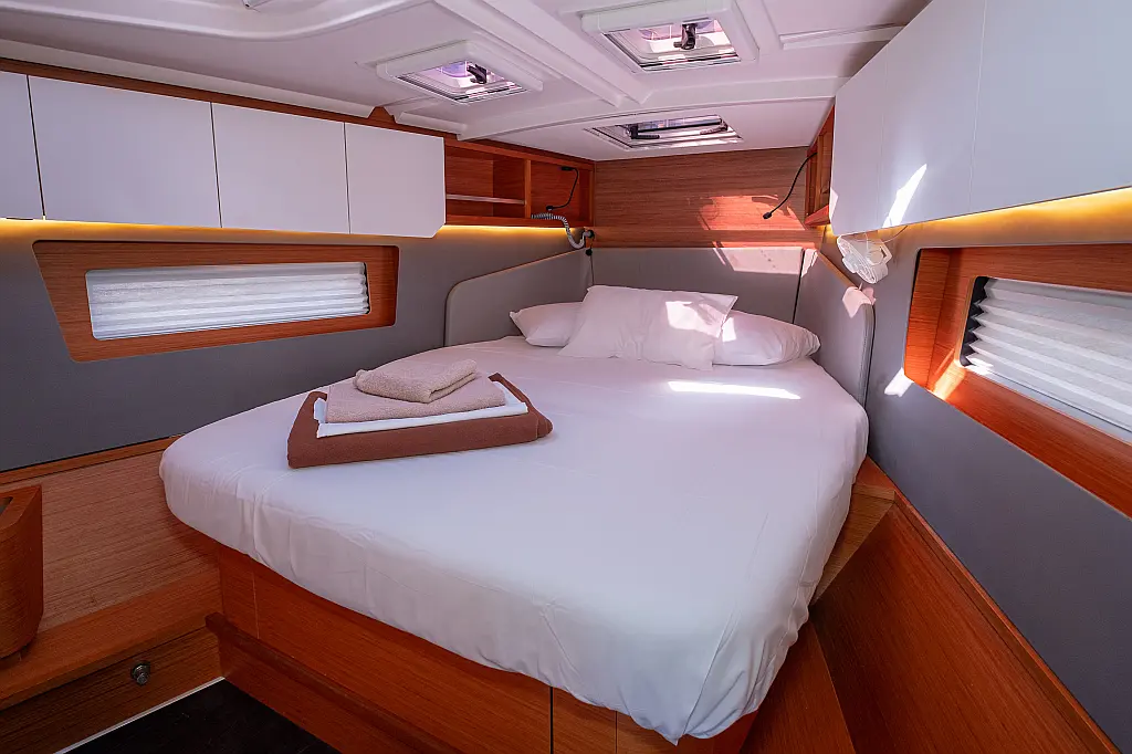 Cockpit cushions , Sprayhood , Bimini , Coffee maker , Wi-Fi & Internet , Holding tank , Dinghy , Outboard engine , Inverter , Heating , Electric toilet , Barbecue grill in cockpit , Cockpit speakers , Solar Panels , Refrigerator