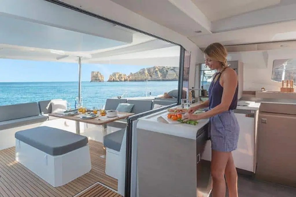 Refrigerator , Bimini , Cockpit cushions , Inverter , Solar Panels , Dinghy , Outboard engine