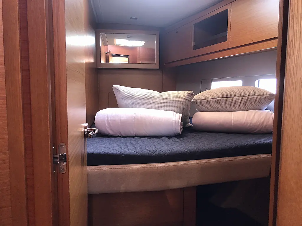 Air condition , Cockpit cushions , Barbecue grill in cockpit , Teak deck , Electric toilet , Wi-Fi & Internet , Water maker , Swimming platform , Electric winches , Hydraulic gangway , Inverter , Solar Panels