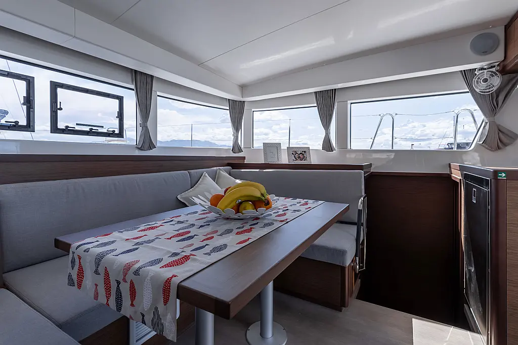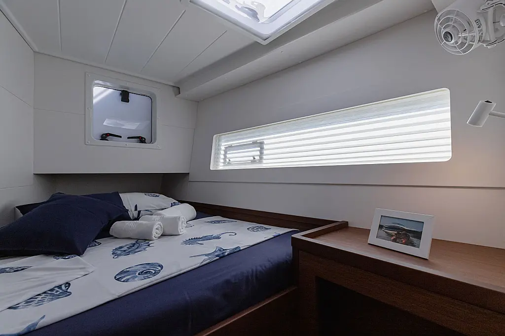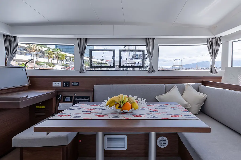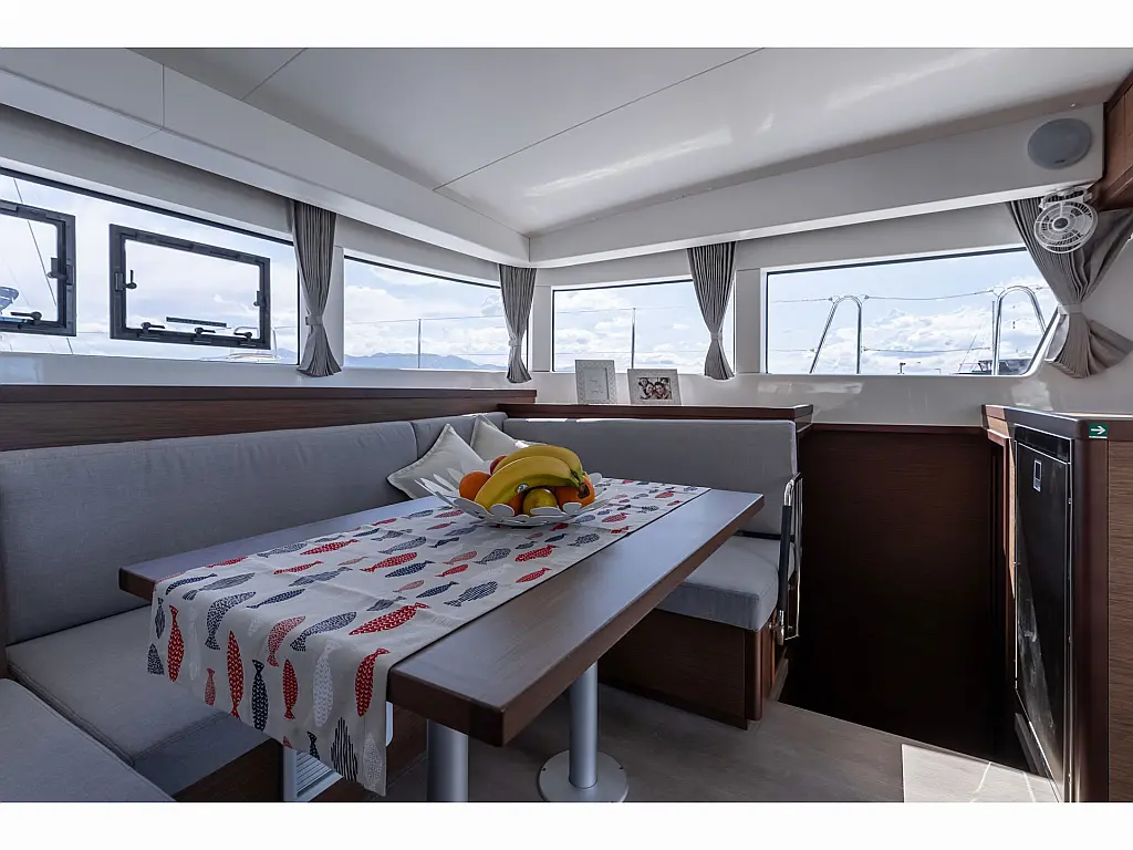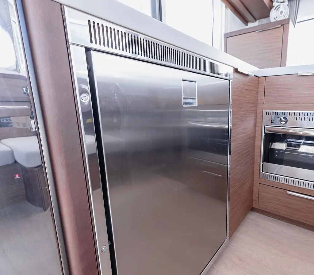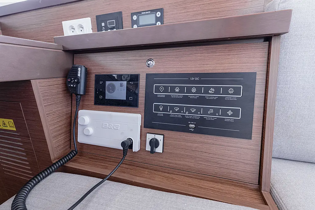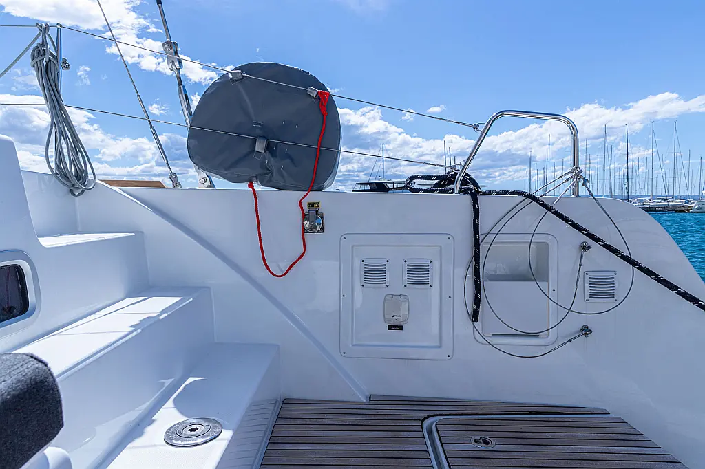 Generator , Holding tank , Air condition , Heating , Coffee maker , Dinghy , Electric toilet , Inverter , Bimini , Cockpit speakers , Teak Cockpit , Cockpit cushions , Refrigerator