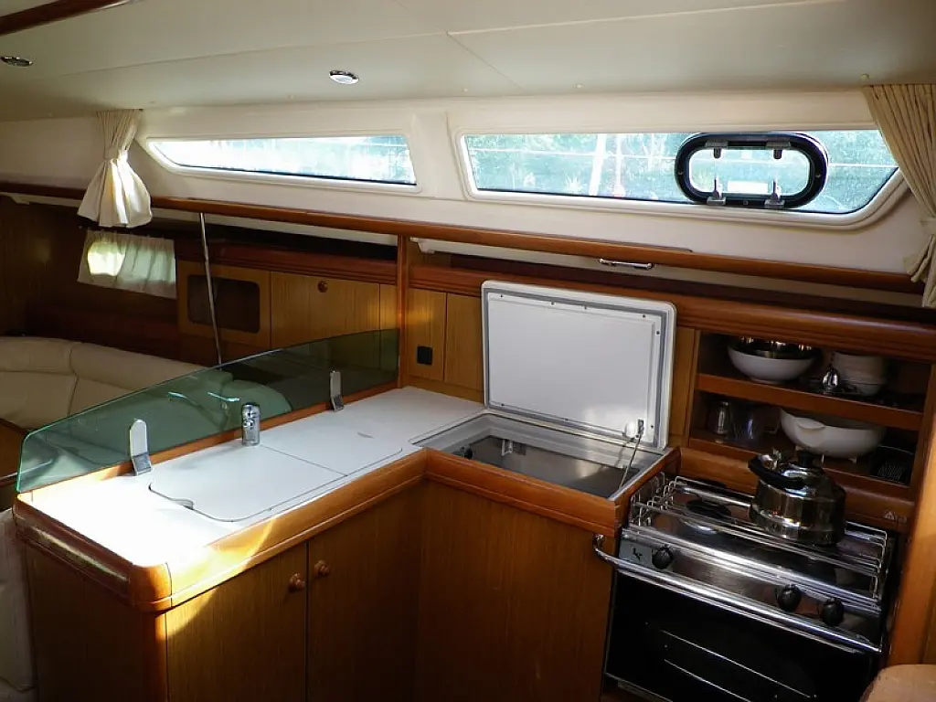Refrigerator , Holding tank , Sprayhood , Solar Panels , Bimini , Cockpit cushions , Dinghy , Coffee maker