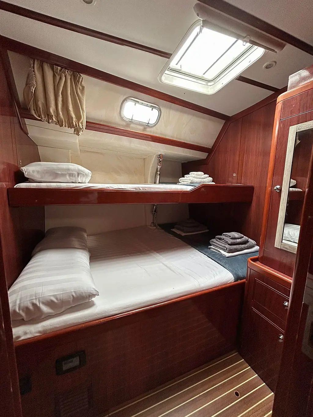 Air condition , Solar Panels , Dinghy , Cockpit speakers , Heating , Bimini , Teak deck , Refrigerator , Sprayhood