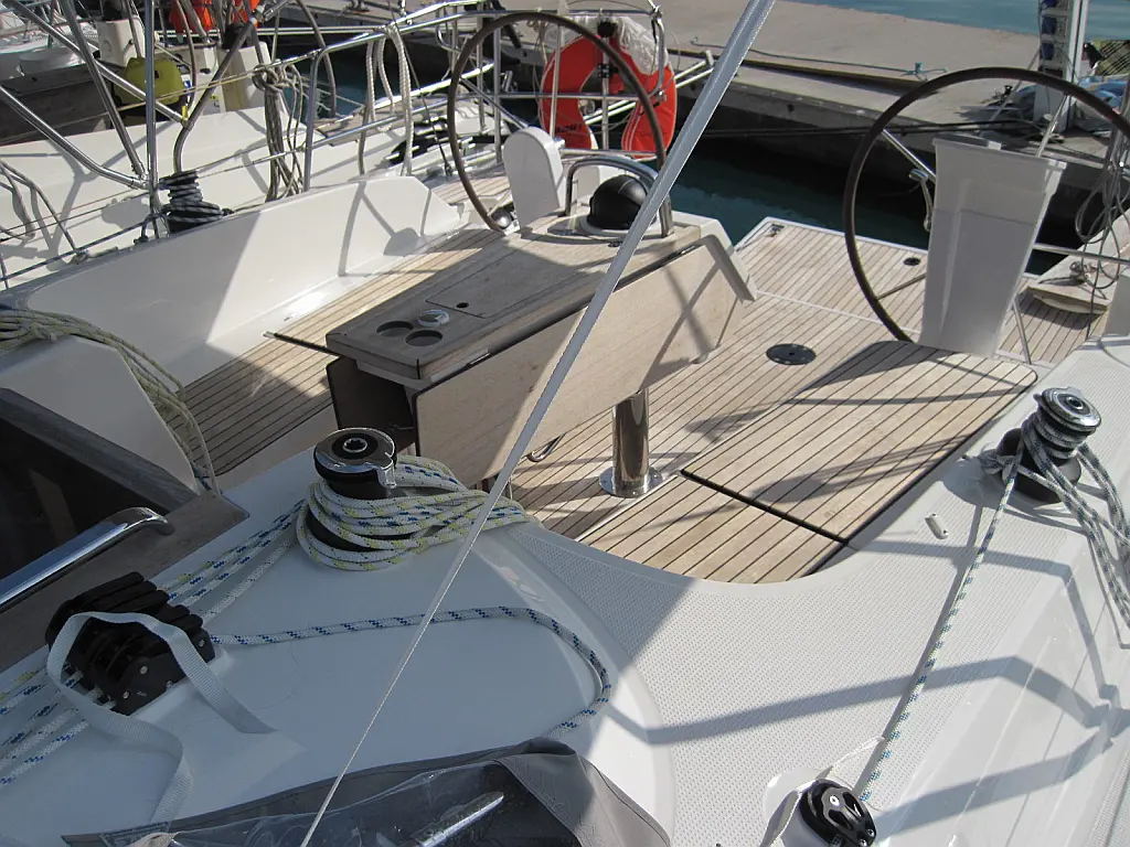 Refrigerator , Dinghy , Bimini , Cockpit speakers , Holding tank , Sprayhood , Swimming platform , Cockpit cushions , Electric toilet