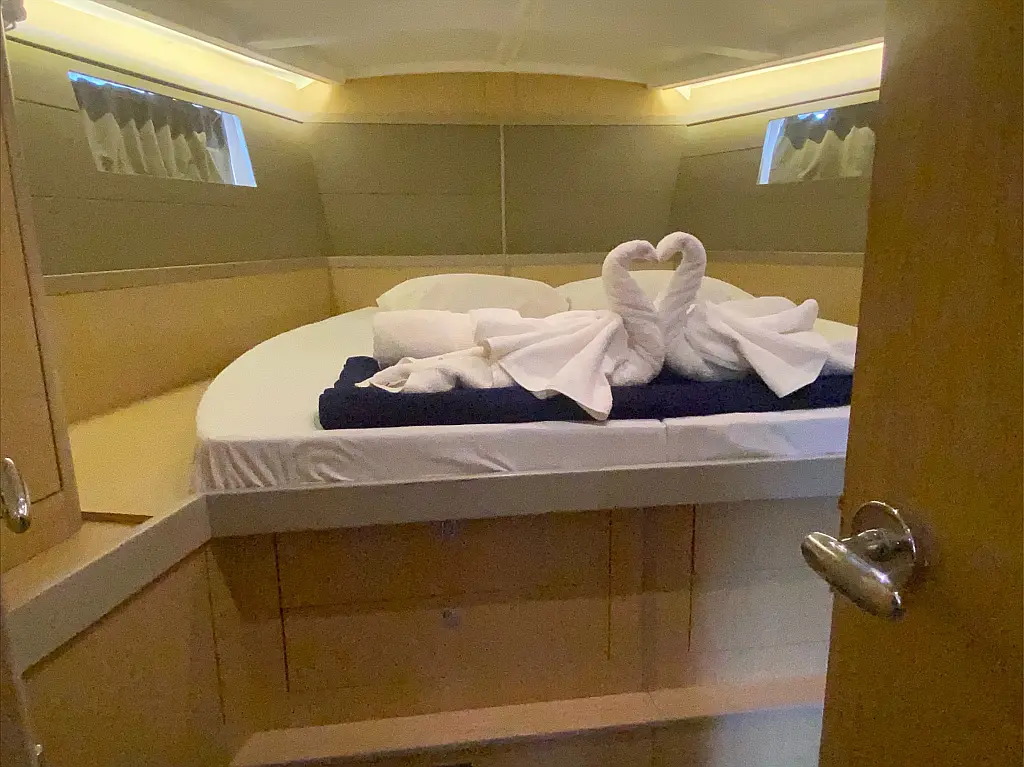 This yacht is currently undergoing a remodel. The two forward cabins will be brought together to form a spacious master suite with a mega bed. The starboard forward head will be converted to a mega shower. The port forward head will remain as a head. In the saloon, the settee will be brought in to make room for a comfy leather recliner.