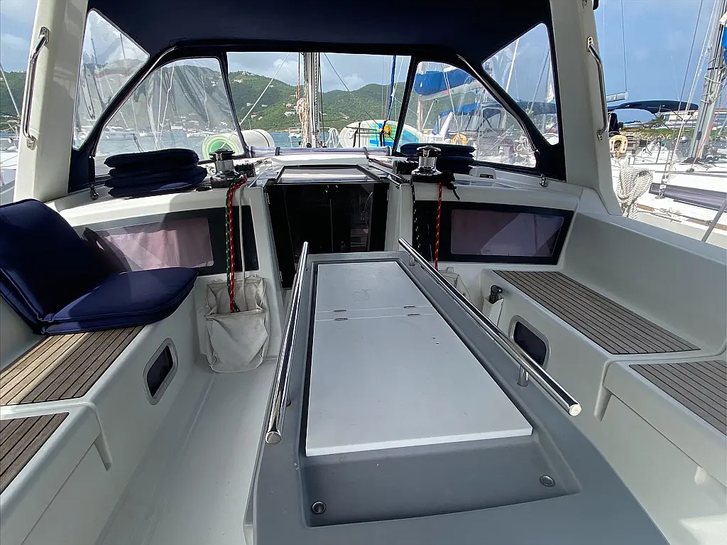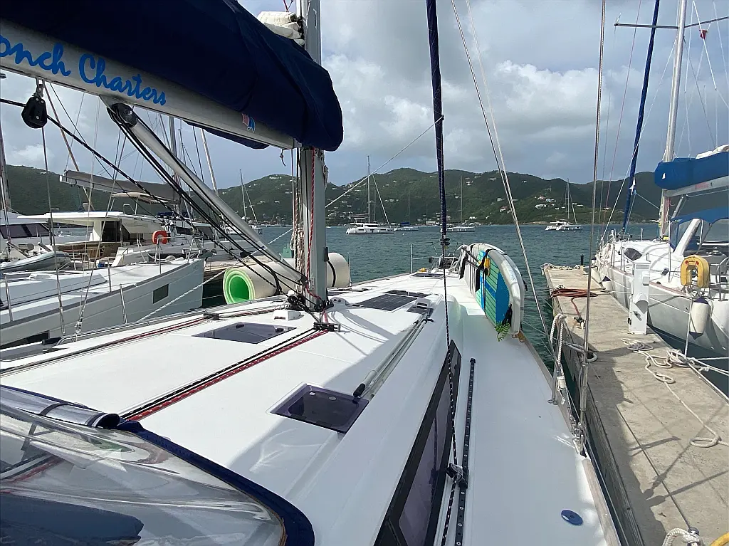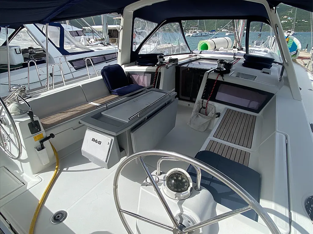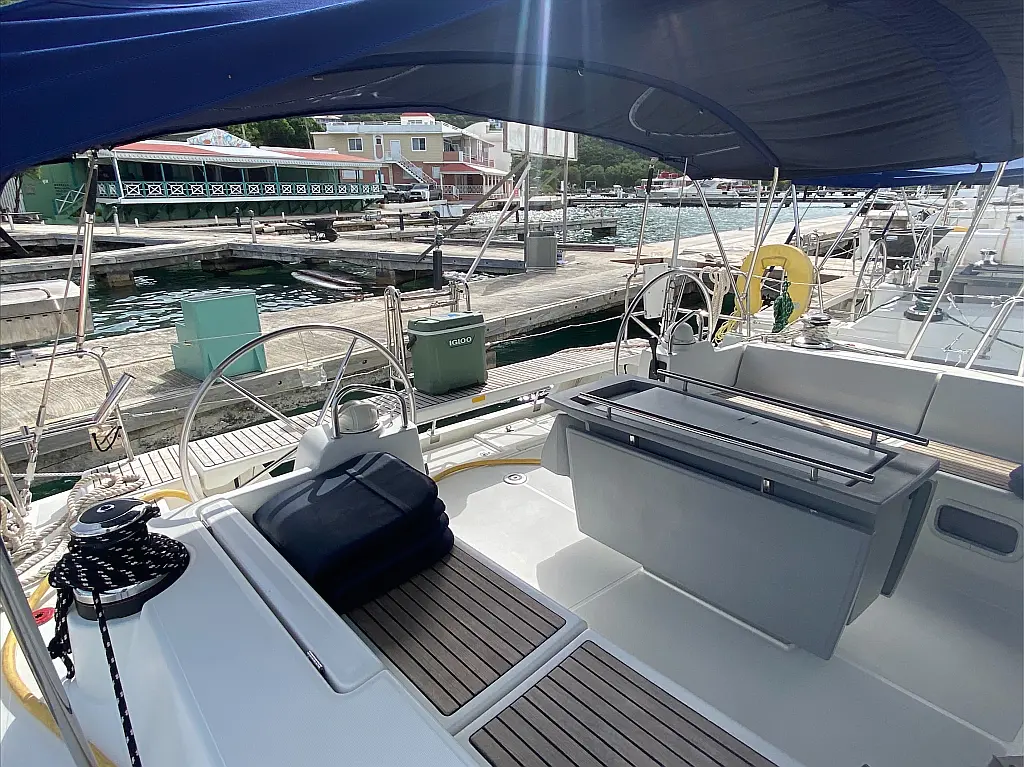 Outside, the Beneteau 48 features an electronically controlled opening transom that converts to a convenient swim platform, while the mainsail arch and centered mast allow for increased stability and comfort in a variety of conditions. Handling is a breeze with dual helms and all lines led aft to the cockpit. A Raymarine Navigation system, electric windlass, electric winches, bow thruster and a 80 hp Yanmar diesel engine round out this fully equipped yacht. Take the helm and experience it for yourself on your next getaway at sea.