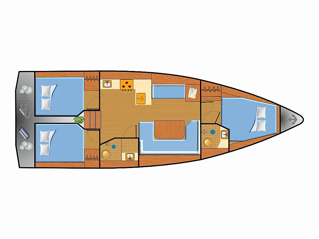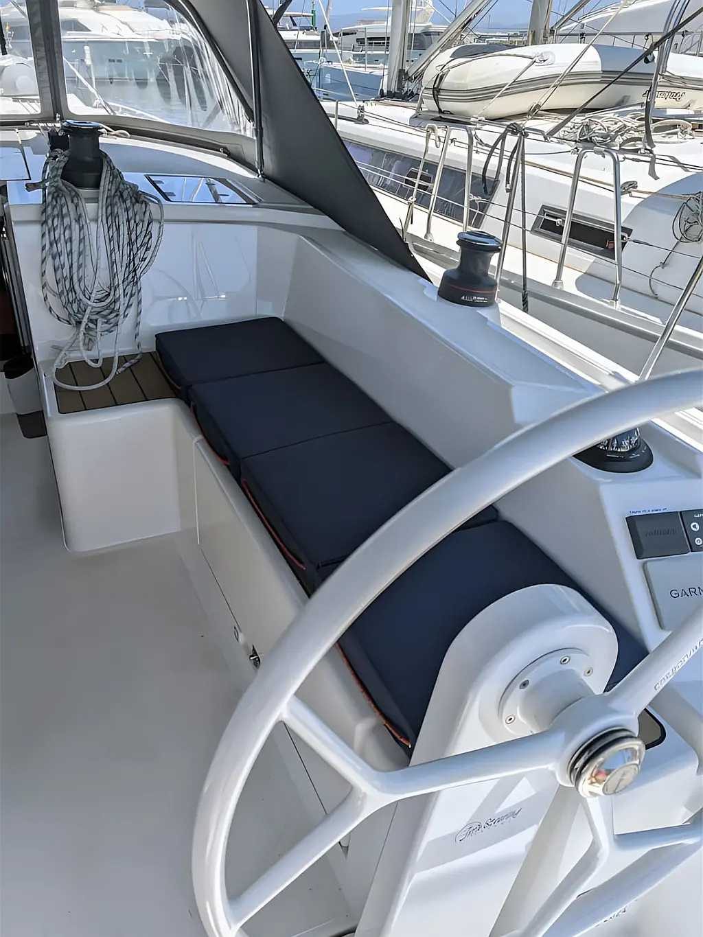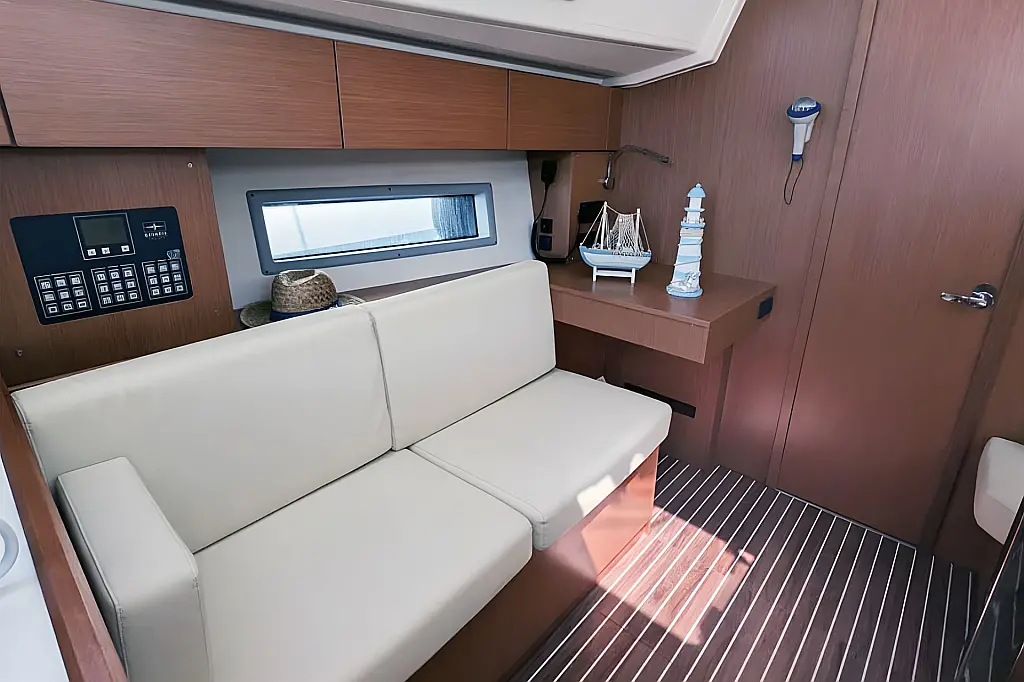Refrigerator , Wi-Fi & Internet , Heating , Bimini , Dinghy , Holding tank , Sprayhood , Cockpit cushions , Teak Cockpit
