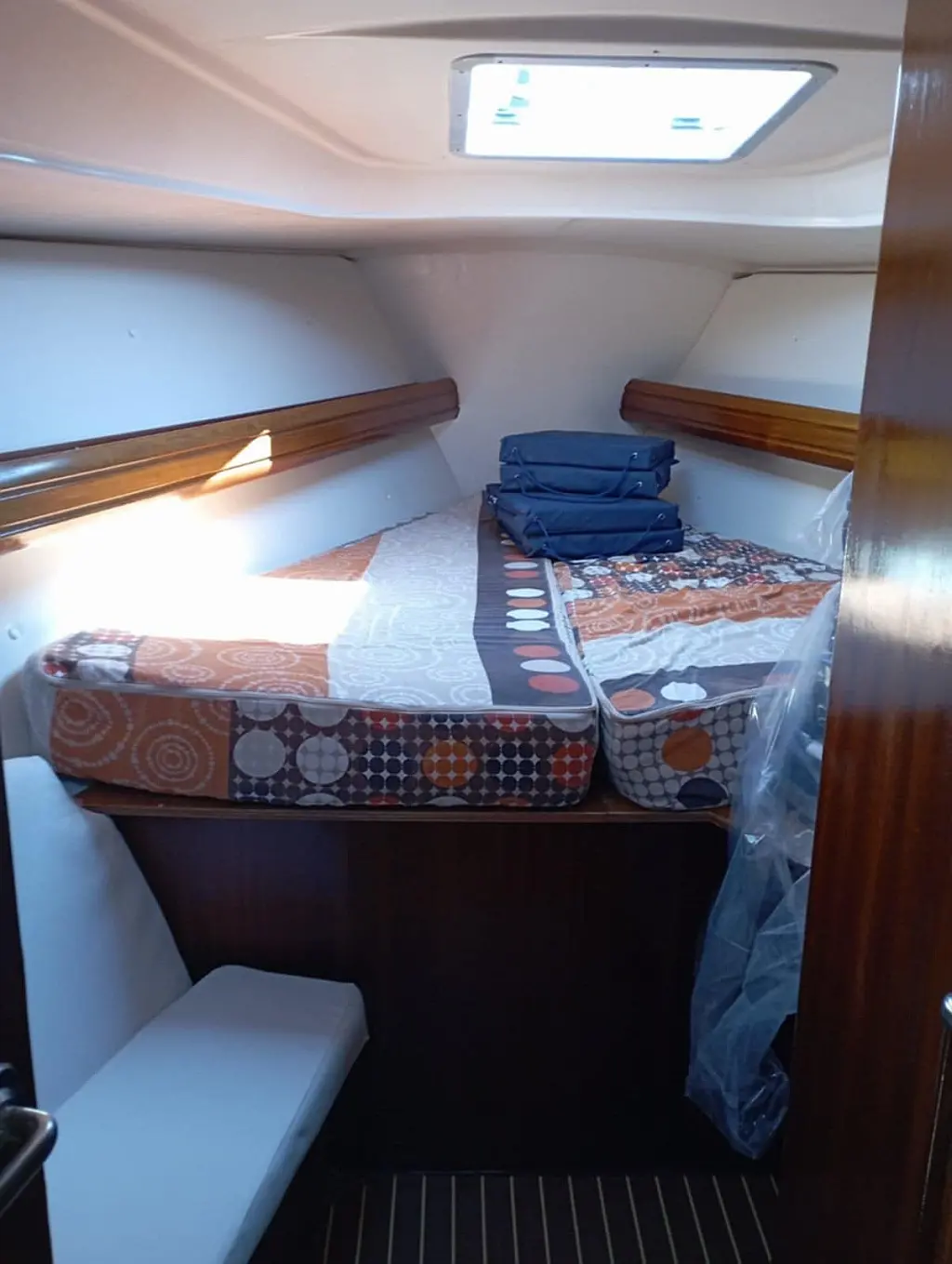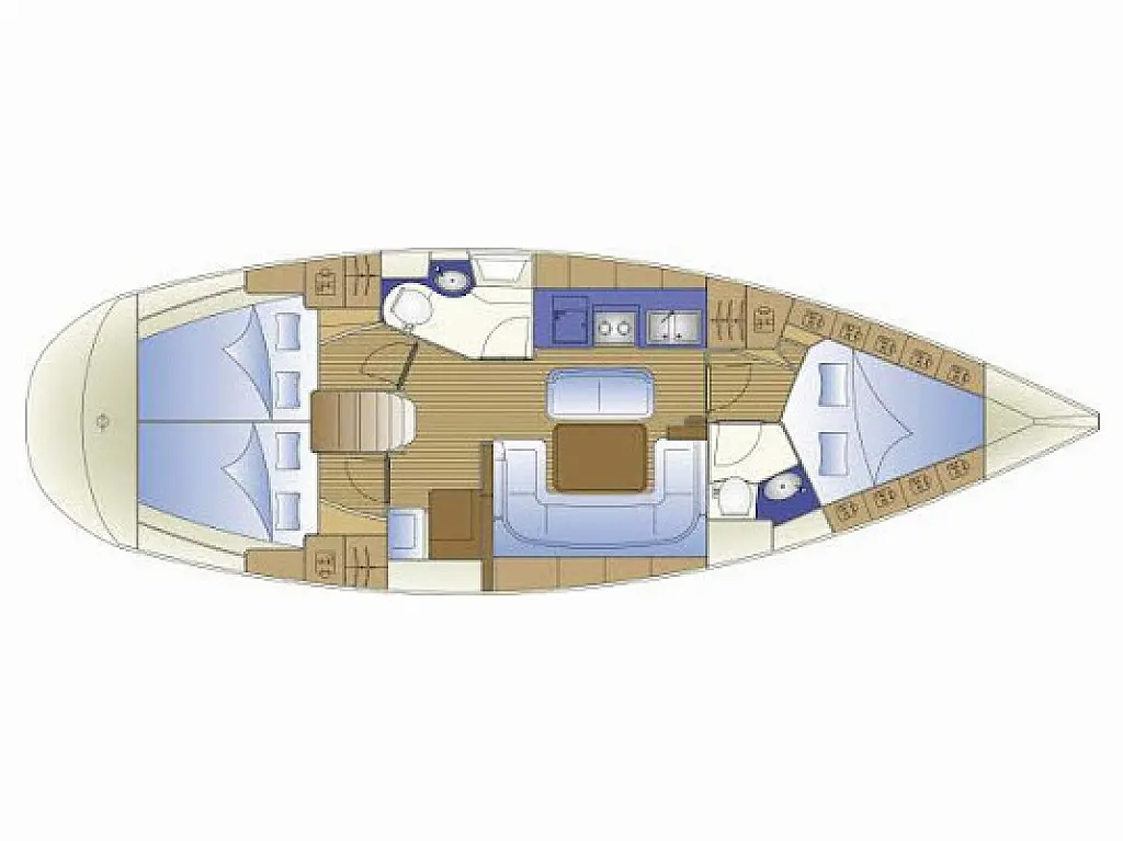 Bimini , Sprayhood , Electric winches , Dinghy , Outboard engine , Solar Panels , Cockpit speakers , Refrigerator