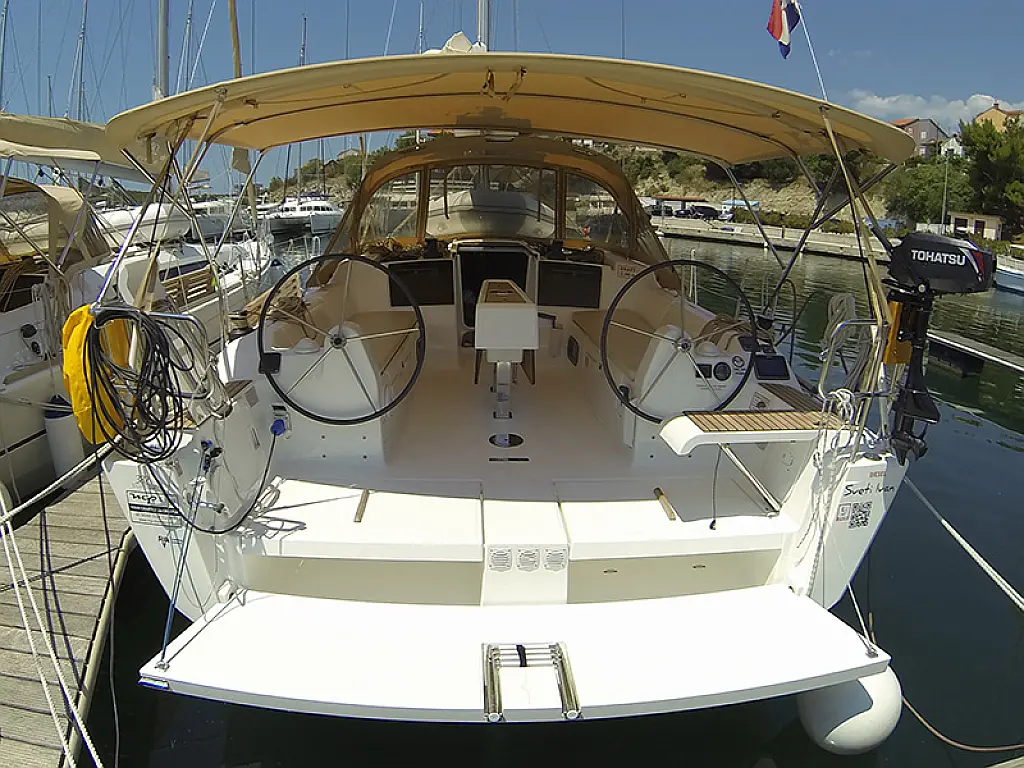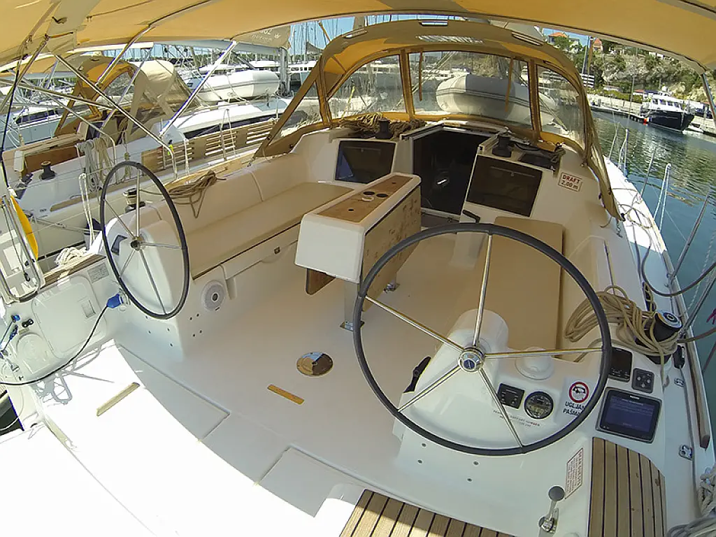 Great Dufour model, huge space inside and in cockpit, 3 large double cabins, 2 large toilets, self tacking jib (optional), small enough for easy handling, big enough for a large company with full comfort.