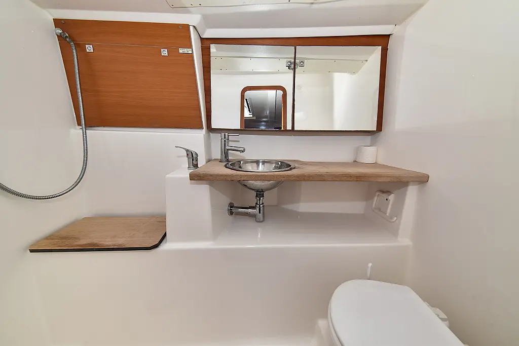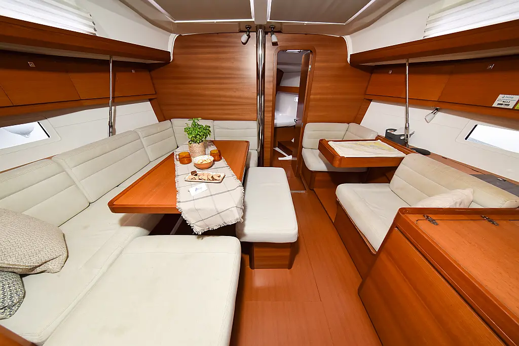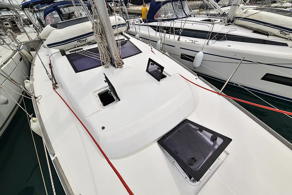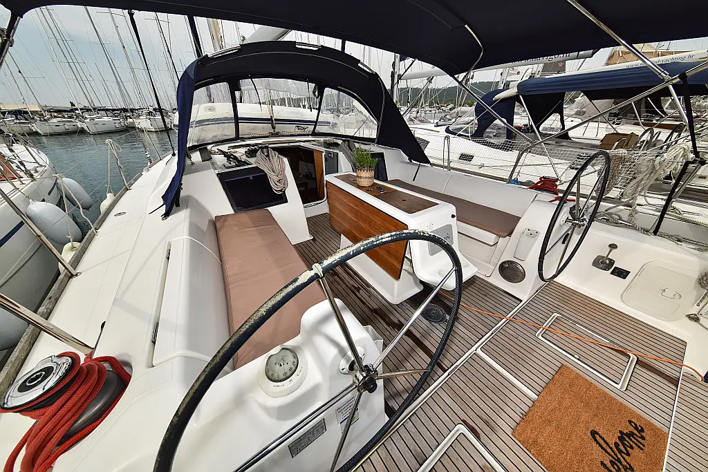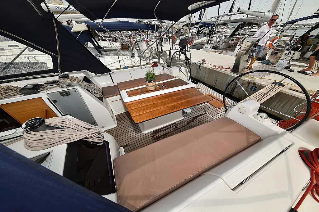 Cockpit speakers , Swimming platform , Bimini , Cockpit cushions , Refrigerator , Sprayhood , Wi-Fi & Internet , Teak Cockpit , Solar Panels , Holding tank
