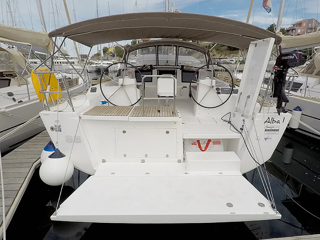 Great Dufour model, fully equipped, with 4 double cabins and 4 toilets, heating, a large cockpit with a bathing platform, and also with a fridge, grill, and sink in the cockpit. Taller mast with full batten main sail, 108% genoa, Full comfort, and high performance.