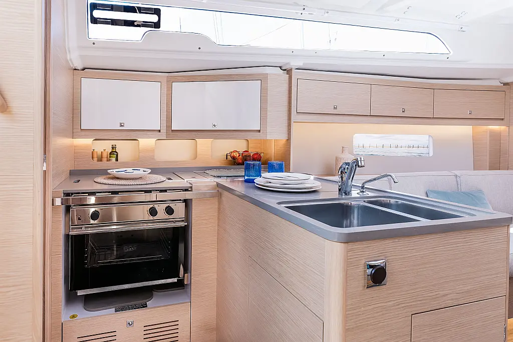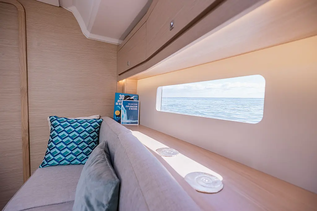 Cockpit cushions , Barbecue grill in cockpit , Electric toilet , Hydraulic gangway , Inverter , Swimming platform