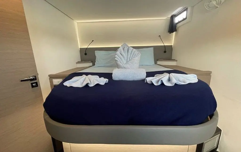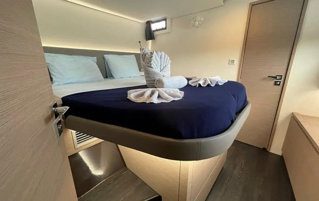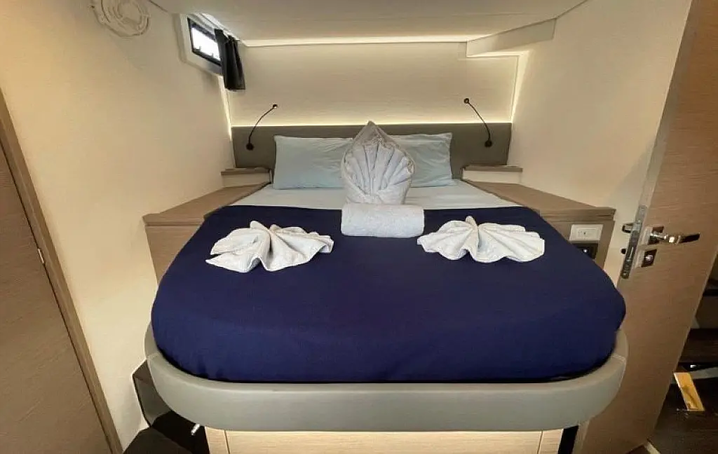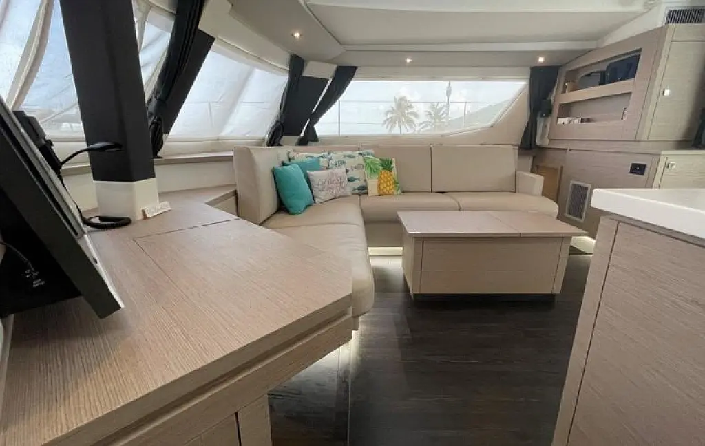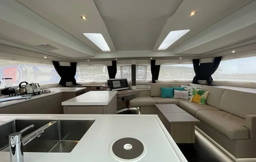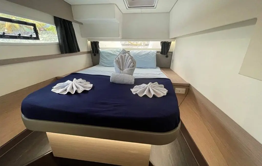 Meet Soleil Rae, our Fountaine Pajot Saba 50 (Owner's version). She is well-light, spacious, and comfortable. She offers 4 Double Cabins and 1 Super Single Cabin, each with its own electric head. Full air-conditioning with generator keeps everyone cool, and there’s a cockpit fridge plus an ice maker to keep the sundowners flowing.