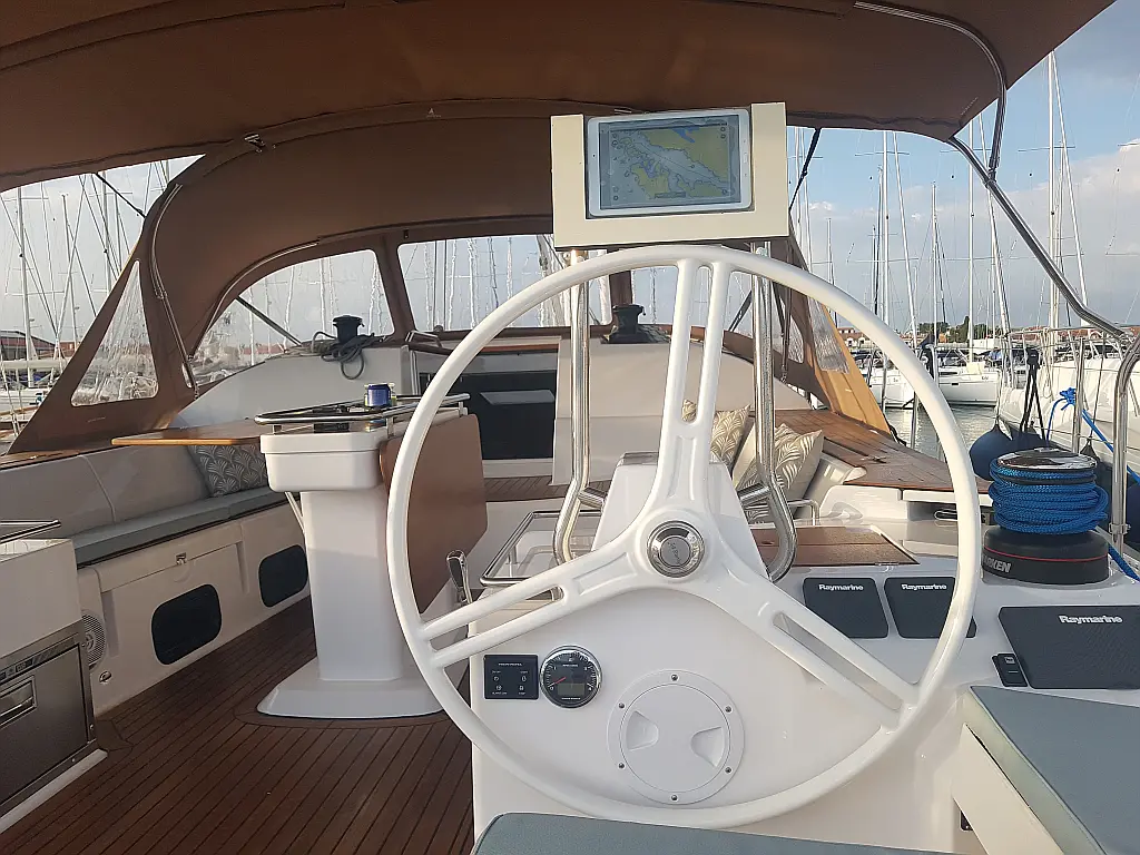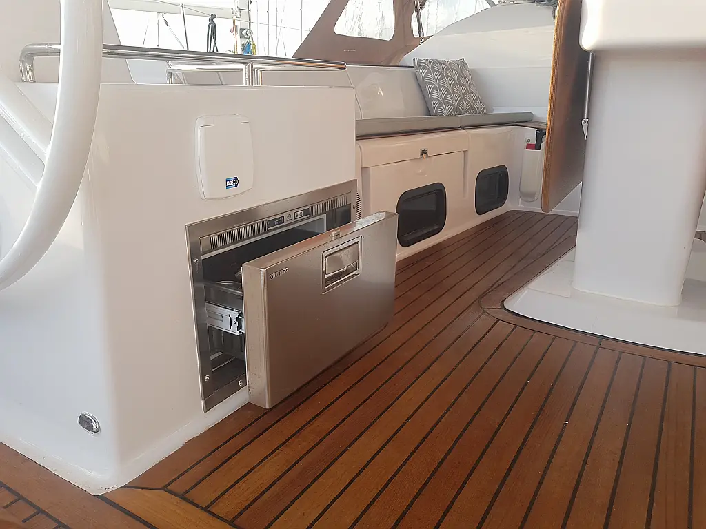 Bimini , Cockpit speakers , Dinghy , Sprayhood , Teak Cockpit , Solar Panels , Refrigerator , Air condition