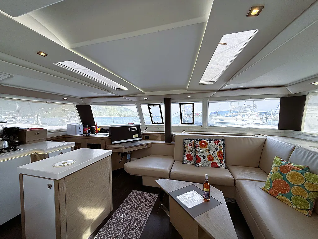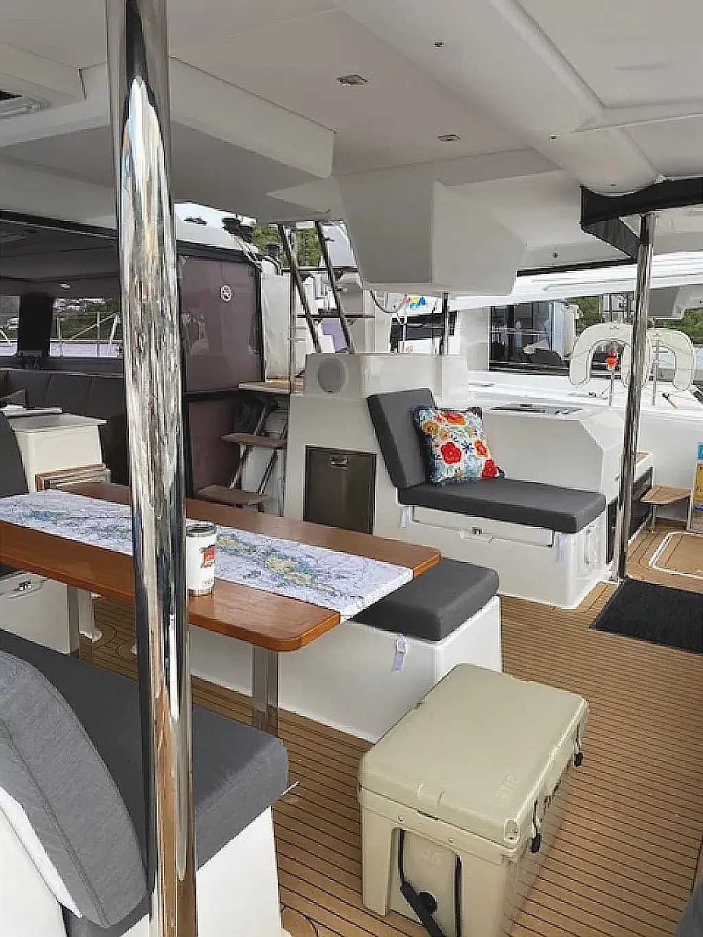 Bring your flower shirts and tropical rock! Parrot Ice is a Fountaine Pajot Saona 47 with 4 en-suite queen berths, a double bunk cabin, and 5 heads, allowing space for up to 10 people. Designed for elegance and comfort, her open layout offers plenty of room for your whole crew and is perfect for a Jimmy Buffet-style party. You can easily whip us some party snacks in the kitchen equipped with an oven, 3 burner gas stove, two drawer-style fridges, and a separate freezer with a small island giving extra space for serving. Outside, guests can spend time on the flybridge or the spacious lounge deck for some sunshine while sipping a tasty cocktail. The covered helm station is also close to the action, connected to the cockpit by a few short steps, so the captain still gets to join in the fun. This luxury yacht is fully equipped with a variety of amenities, including a generator, air conditioning for your comfort and convenience.