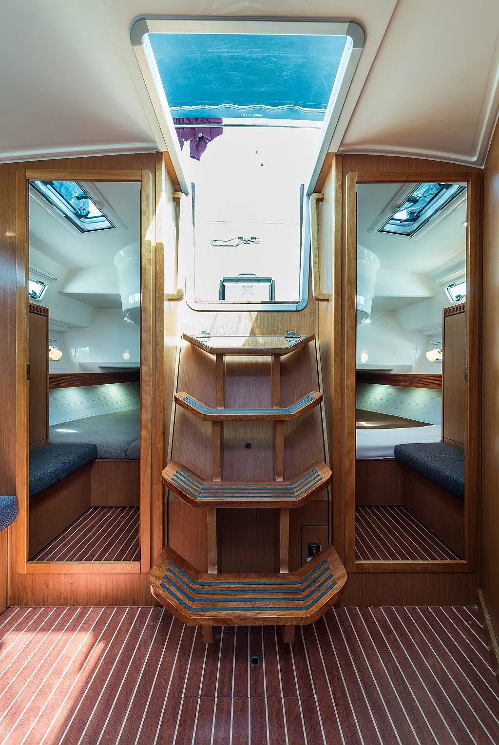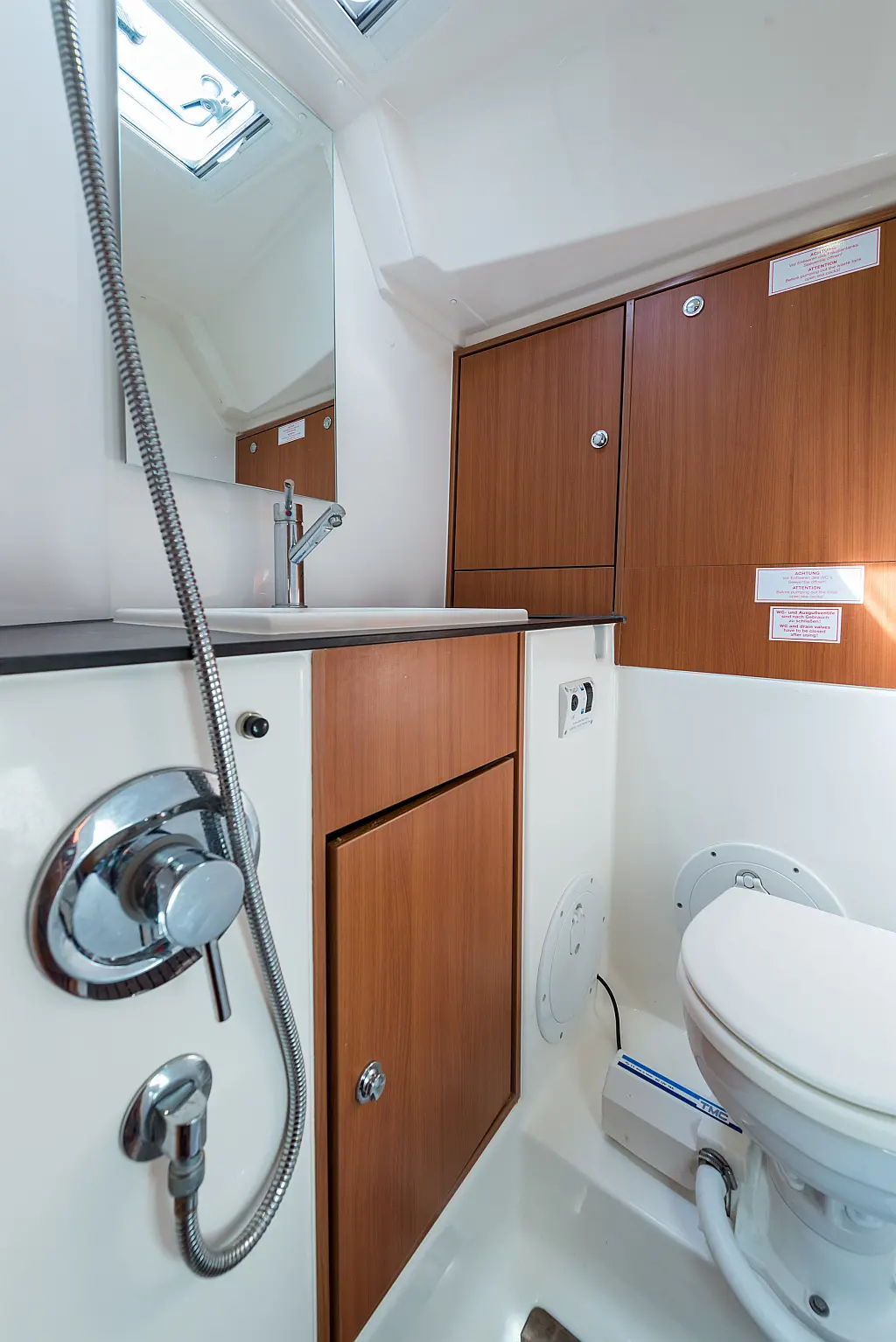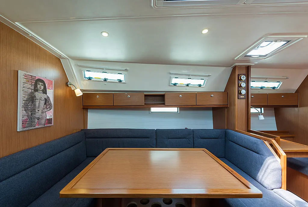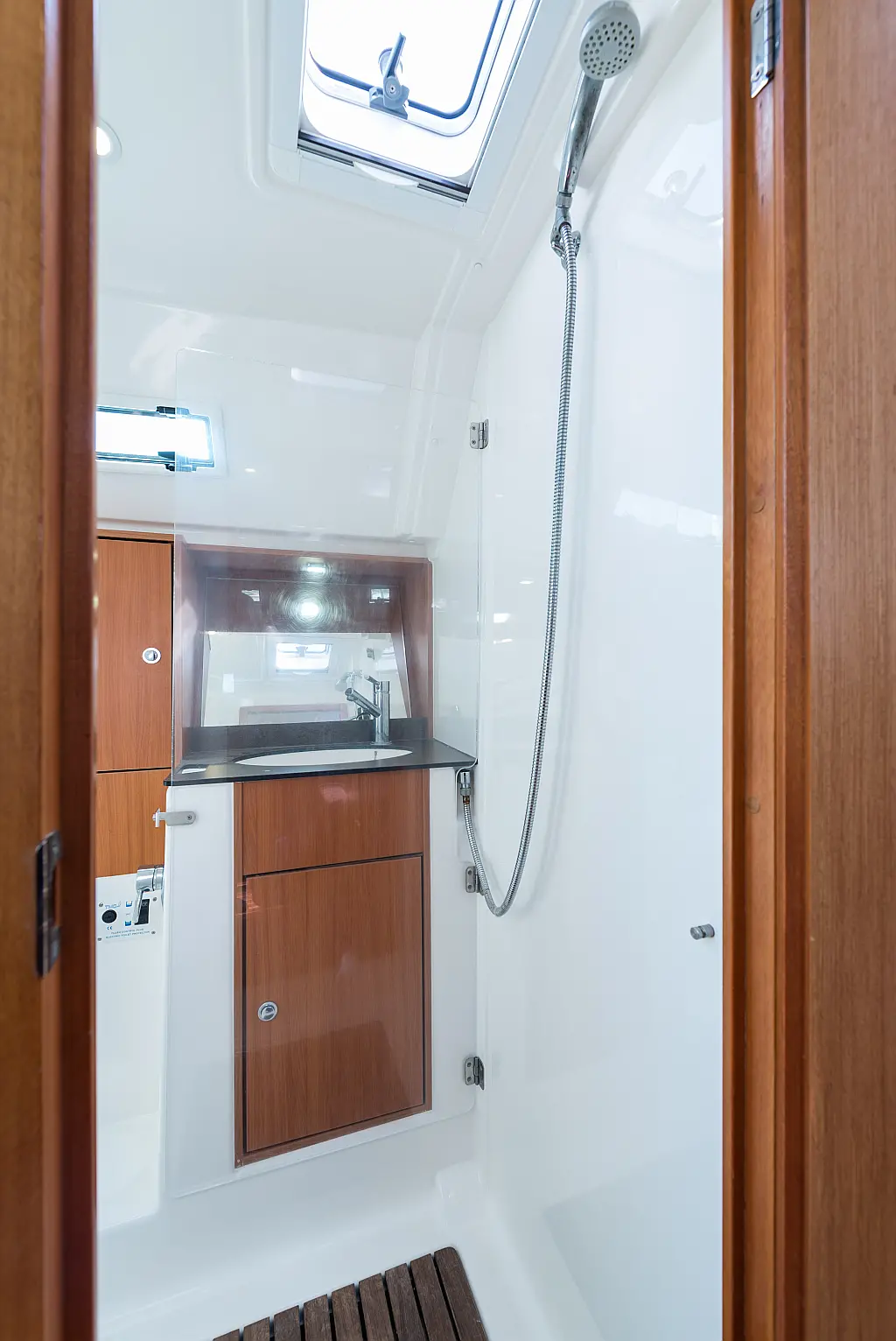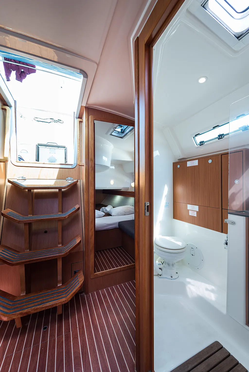 Holding tank , Bimini , Sprayhood , Dinghy , Cockpit speakers , Electric winches , Electric toilet , Solar Panels , Teak Cockpit
