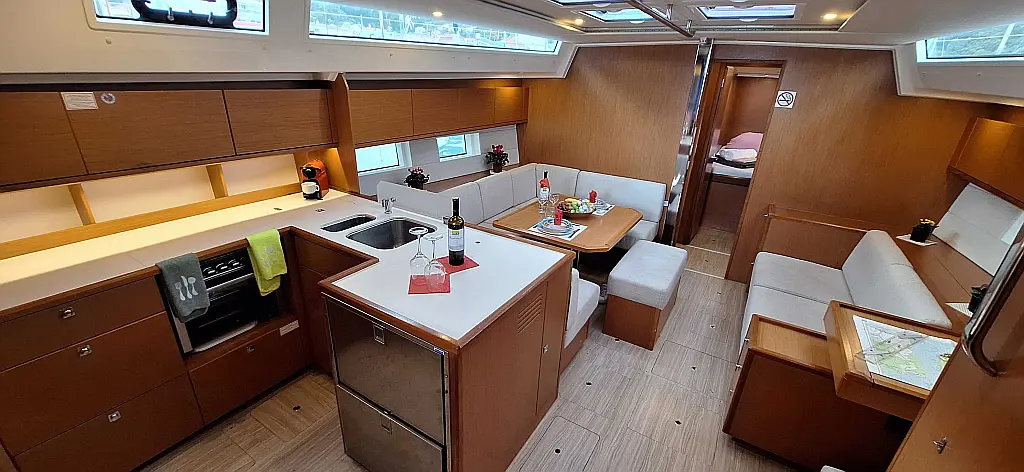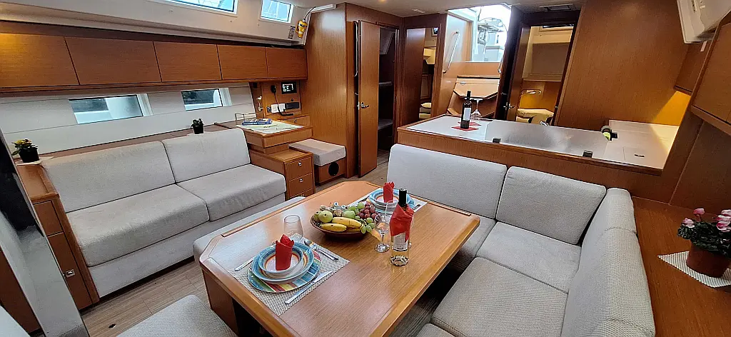 Air condition , Bimini , Generator , Sprayhood , Dinghy , Outboard engine , Cockpit cushions , Electric toilet , Inverter , Wi-Fi & Internet , Holding tank , Refrigerator