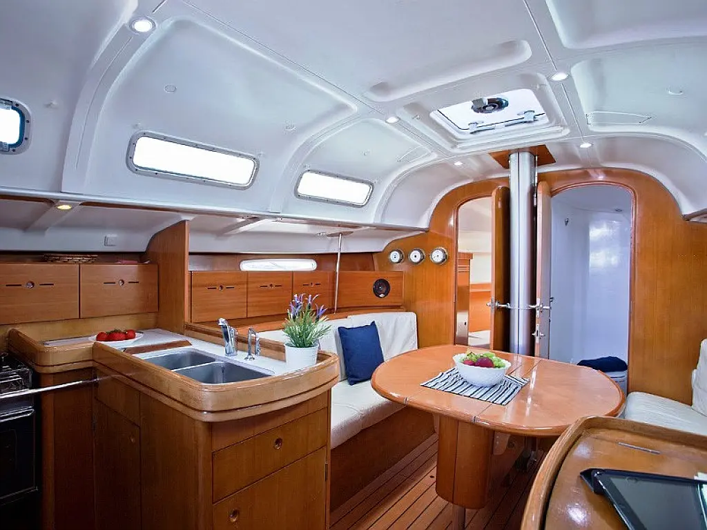 INCLUDED VAT (21%). Full insurance. Safety material for zone 2. Mooring in port base and use port services. Dinghy. Gas. EXCLUDED Fuel, food and beverage, mooring in diferents ports to base. Final cleaning 90.-€. Deposit 2000€ (credit card/deposit) EXTRAS Bed linen 60.-€/booking. Skipper, 165€/day, more maintenance. Outboard engine 100.-€. Spinnaker 100.-€. Paddle surf 100.-€ PAYEMENT 50% at reservation and 50% before boarding SAILBOATS EQUIPMENT Electronic cartography (Plotter) and paper, autopilot, radio VHF, GPS, speedometre, depth sounder, wind, EPIRB and life raft, radio FM/AM with CD interior/exterior, kitchen with oven, dinner set, frigde, hot water, cockpit shower, anchor windlass, sprayhood, bimini, dinghy, pillows, blankets, snorkel equipment.