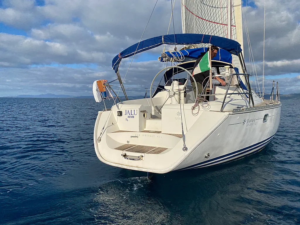 The Sun Odyssey 42.2 is an elegant and comfortable boat, ideal for unforgettable cruises. Featuring a spacious and welcoming cockpit, this boat offers a fixed table that allows for enjoying meals and relaxing moments outdoors in total comfort. With well-designed spaces and a cozy interior layout, the Sun Odyssey 42.2 provides comfort and functionality for an unparalleled sailing experience. Thanks to its exceptional performance and maneuverability, this boat is perfect for exploring the waters with style and safety. With the Sun Odyssey 42.2, your clients will be able to enjoy unforgettable cruises and relaxing moments on the open sea.
