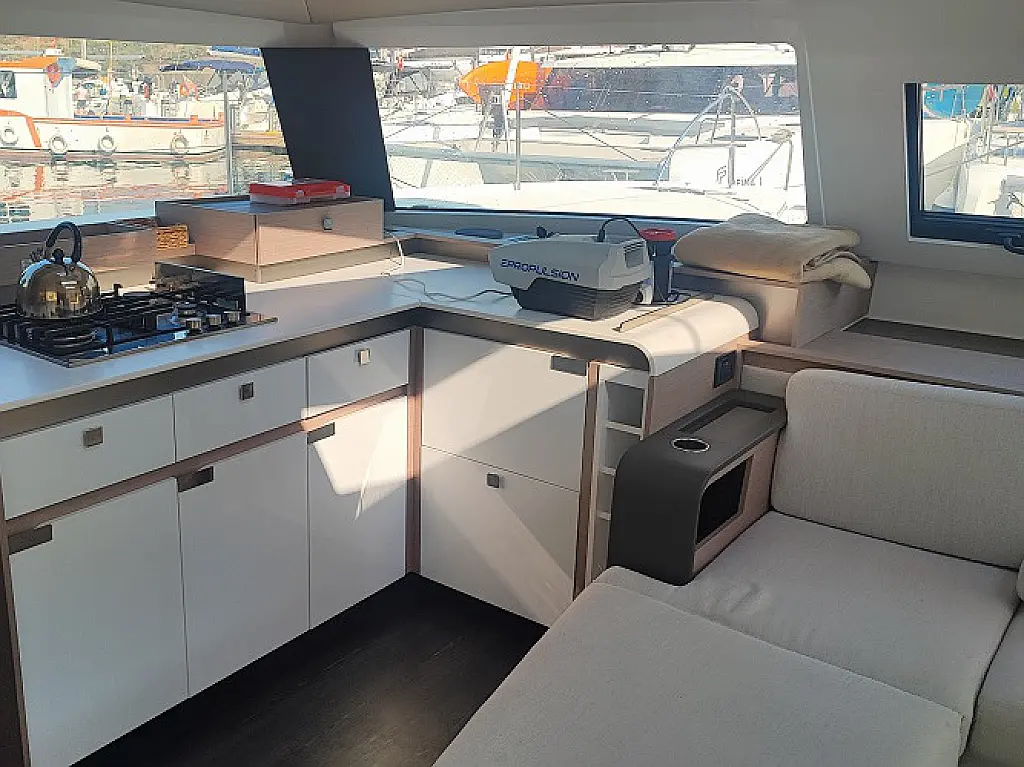 Refrigerator , Dinghy , Cockpit cushions , Electric toilet , Teak Cockpit , Outboard engine , Electric winches , Generator , Air condition , Heating