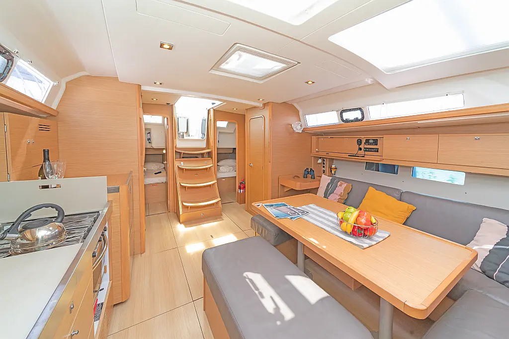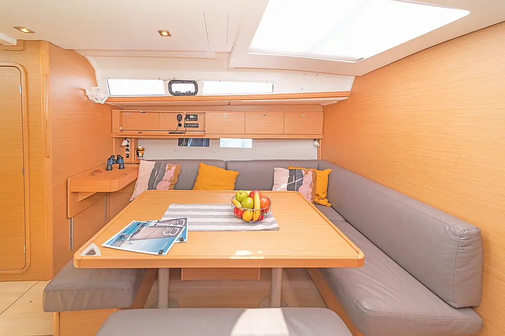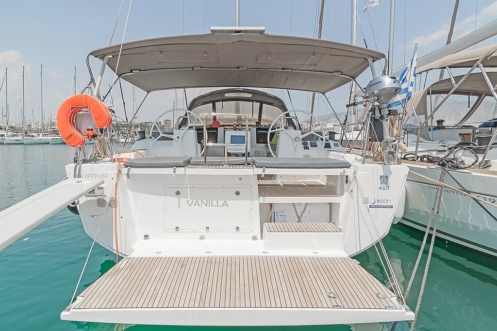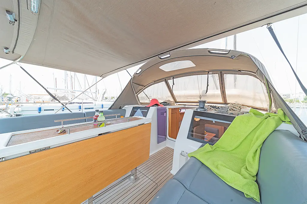 Sprayhood , Bimini , Refrigerator , Coffee maker , Holding tank , Dinghy , Electric toilet , Barbecue grill in cockpit , Cockpit cushions , Solar Panels , Cockpit speakers