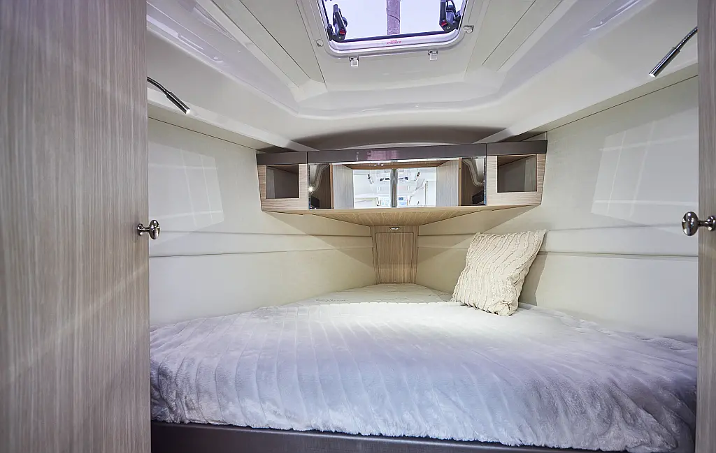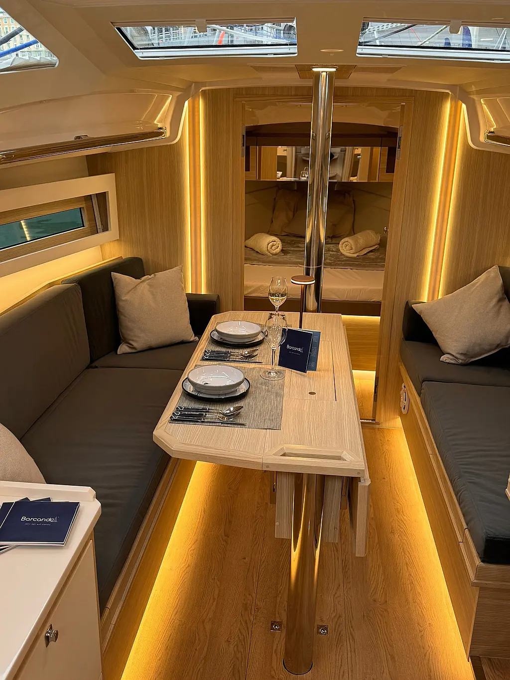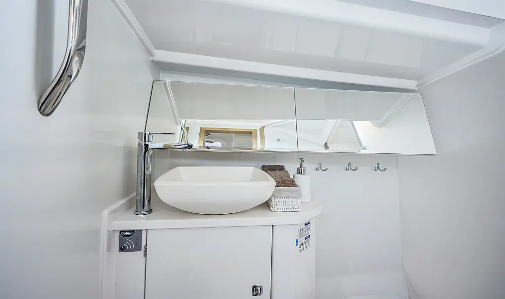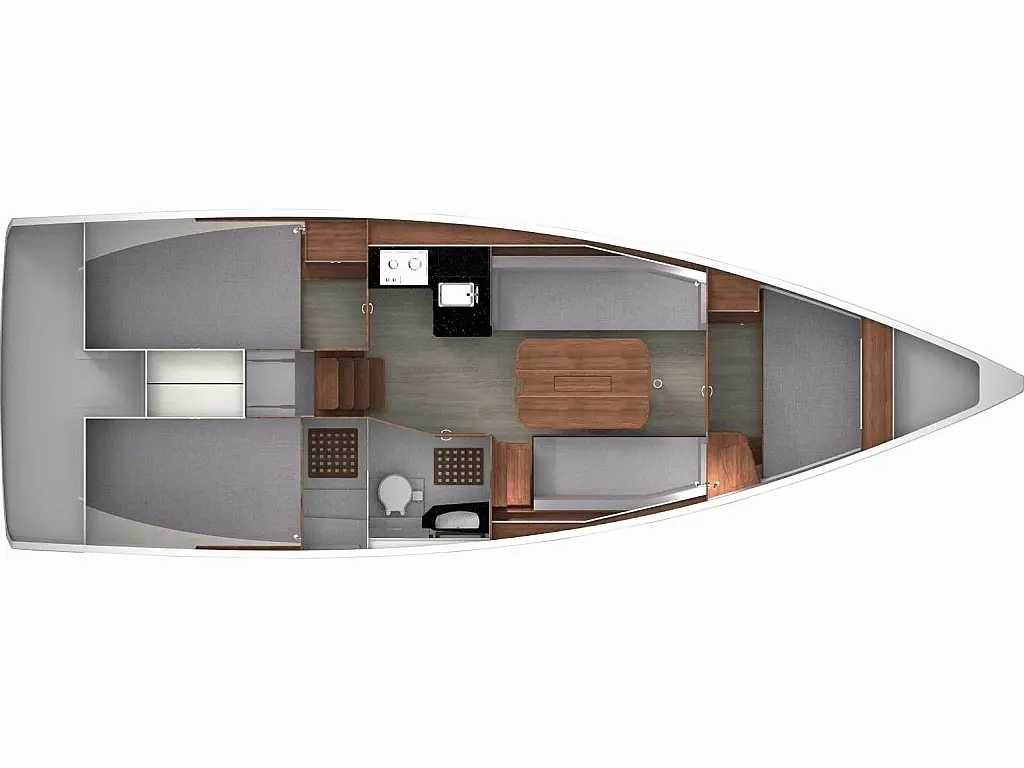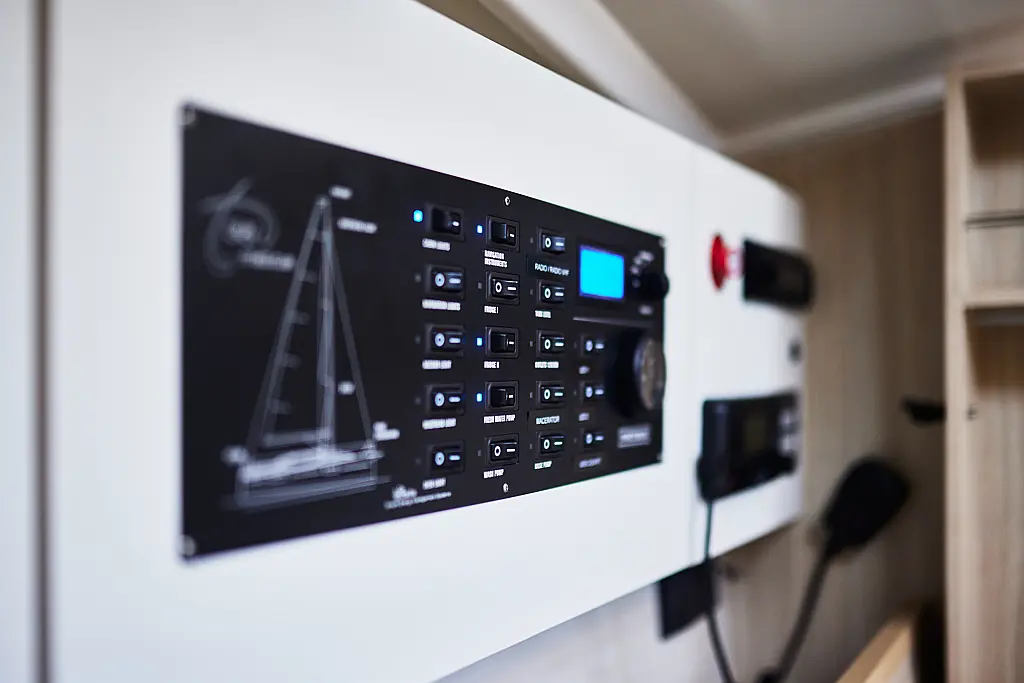 Teak deck , Swimming platform , Cockpit speakers , Sprayhood , Cockpit cushions , Electric toilet , Dinghy , Teak Cockpit , Refrigerator , Electric winches , Inverter , Outboard engine