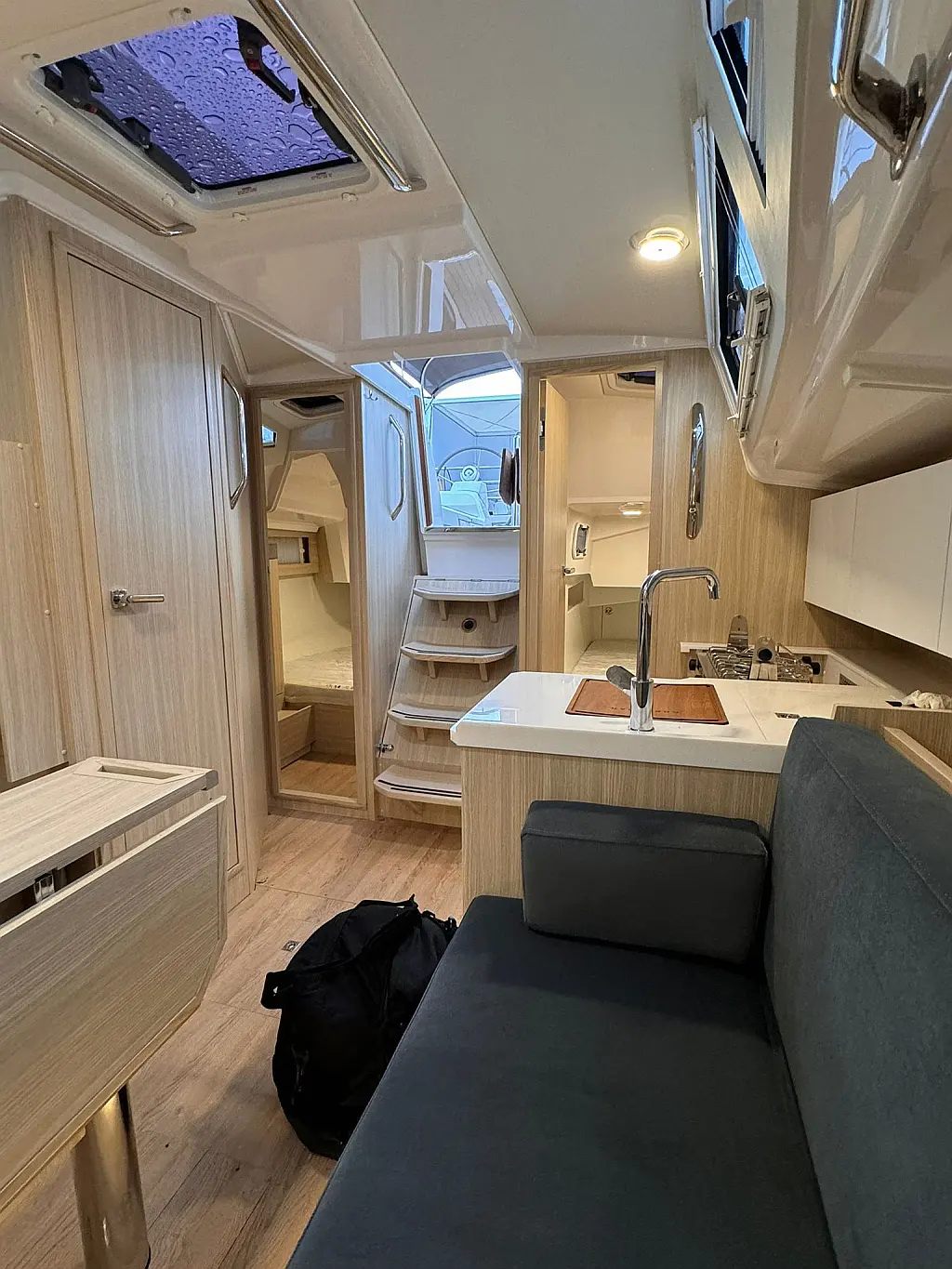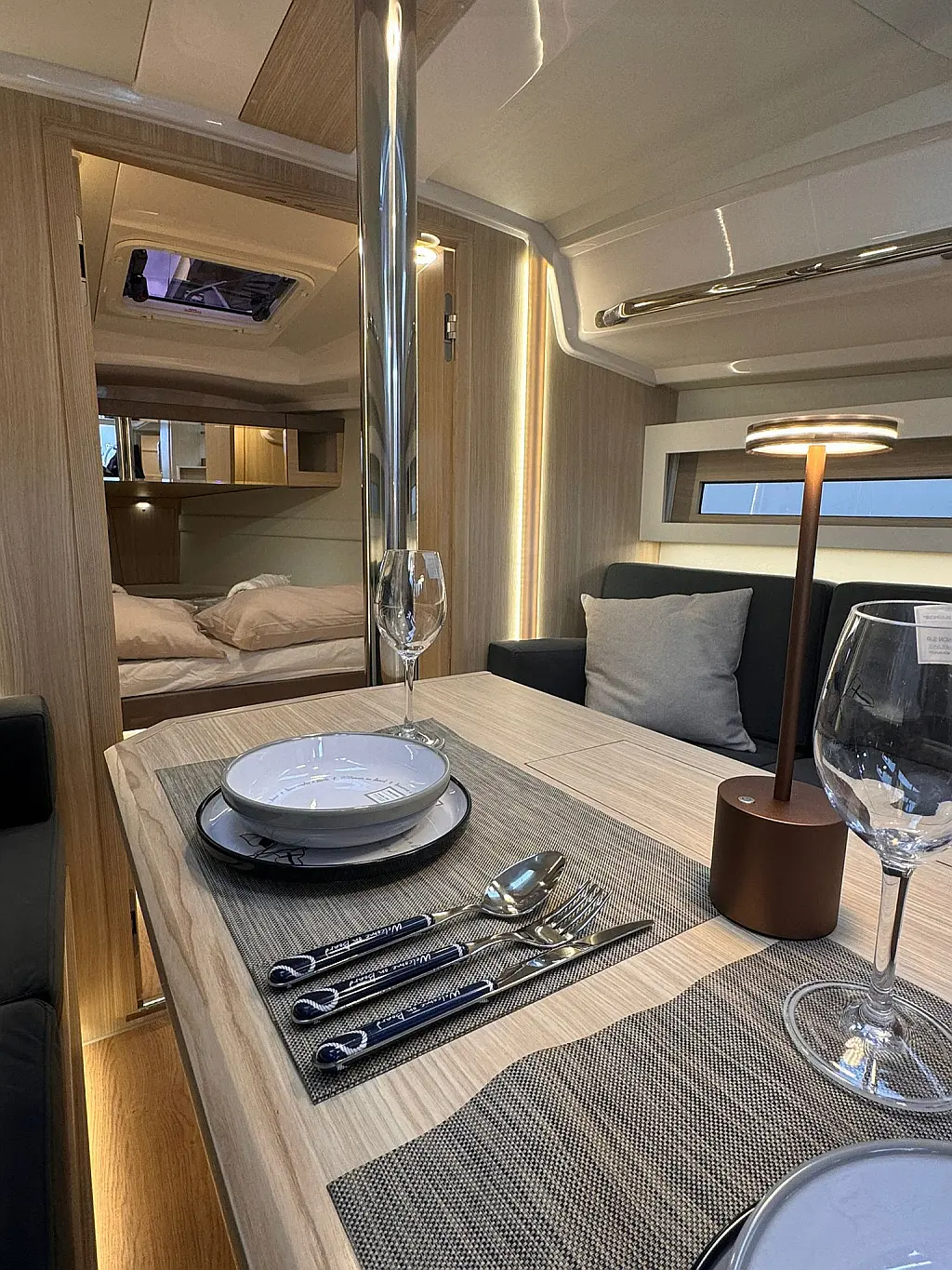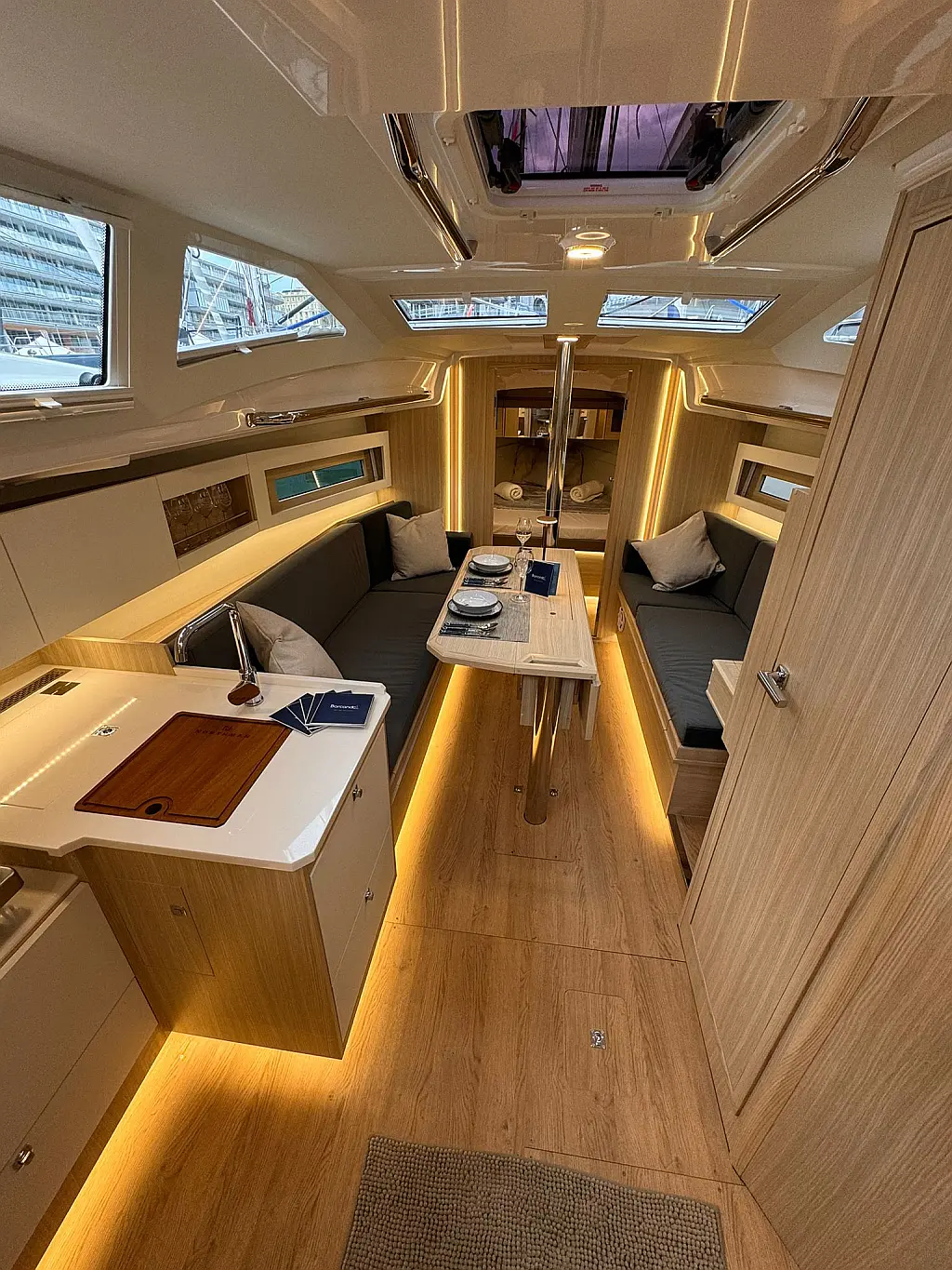 Teak deck , Swimming platform , Cockpit speakers , Sprayhood , Cockpit cushions , Electric toilet , Dinghy , Teak Cockpit , Refrigerator , Electric winches , Inverter , Outboard engine