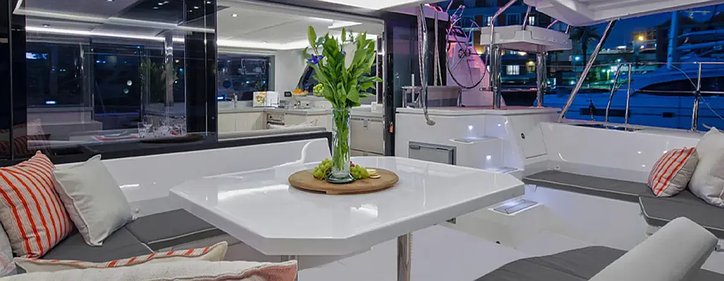 Refrigerator , Bimini , Air condition , Cockpit speakers , Cockpit cushions , Generator , Solar Panels , Electric toilet , Water maker
