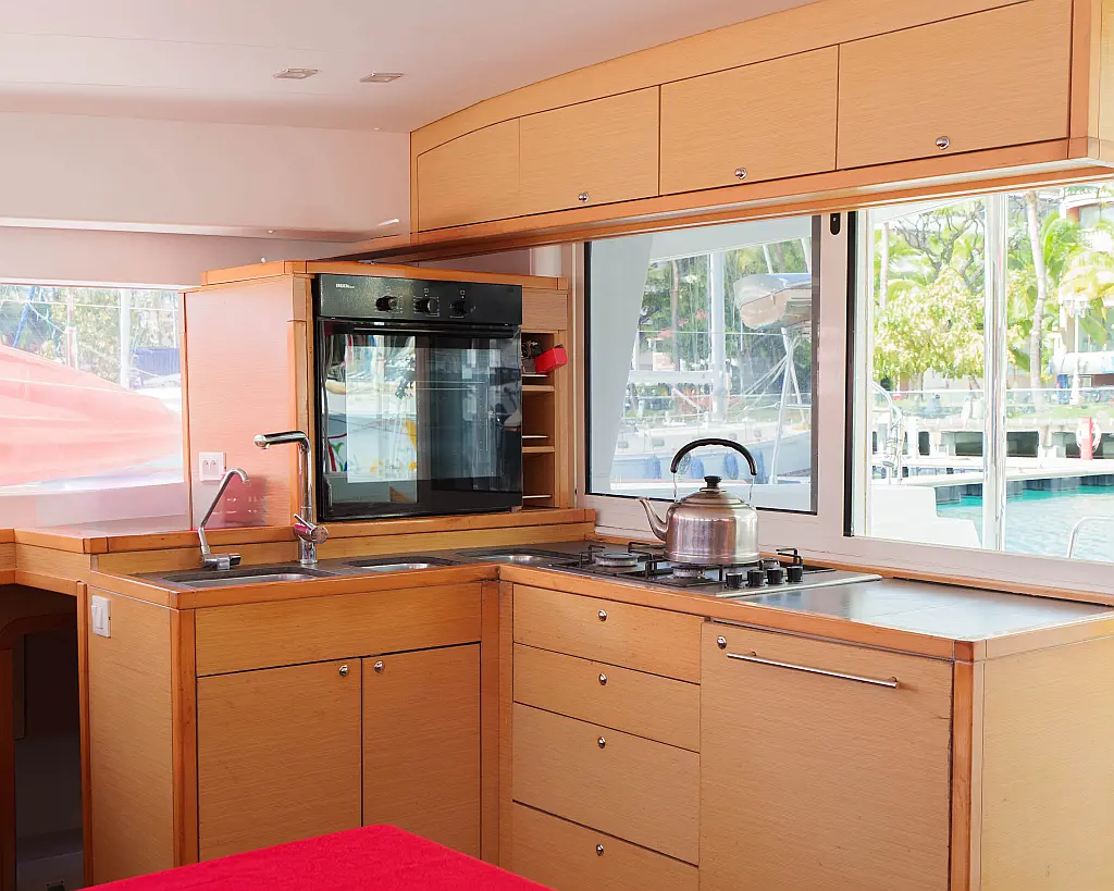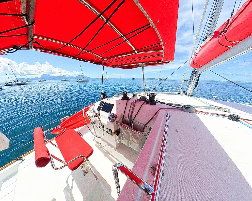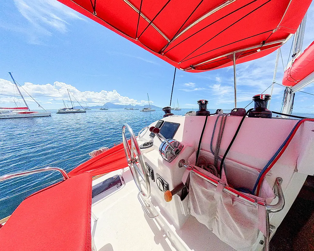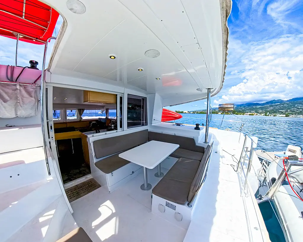 Barbecue grill in cockpit , Bimini , Cockpit cushions , Water maker , Refrigerator , Outboard engine , Solar Panels