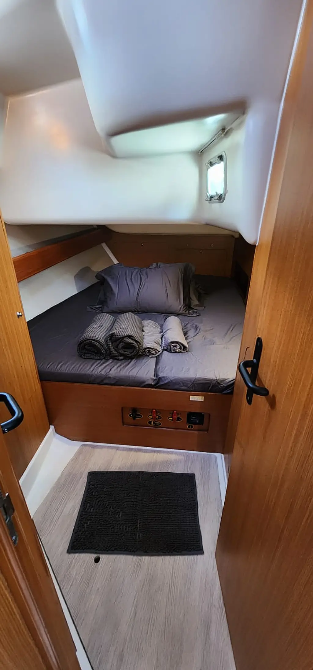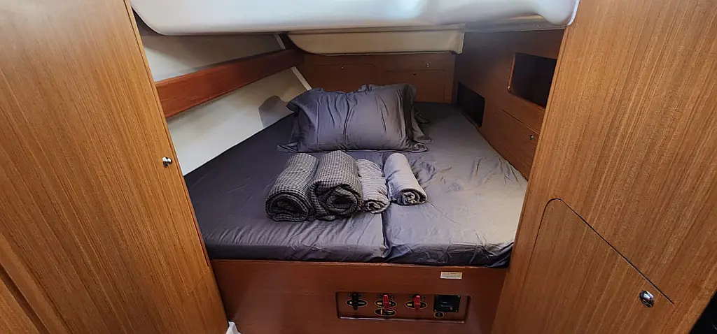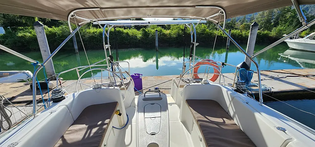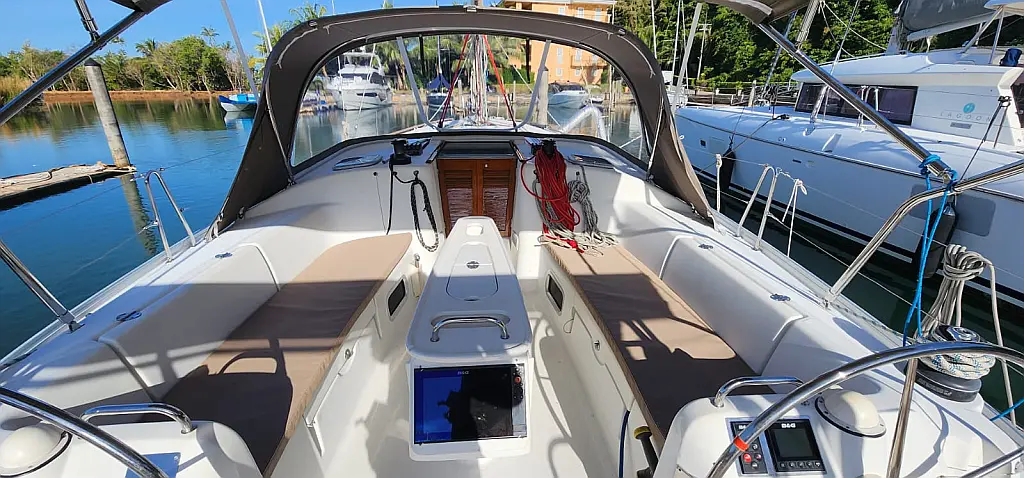 Cockpit speakers , Bimini , Refrigerator , Solar Panels , Outboard engine , Dinghy , Barbecue grill in cockpit
