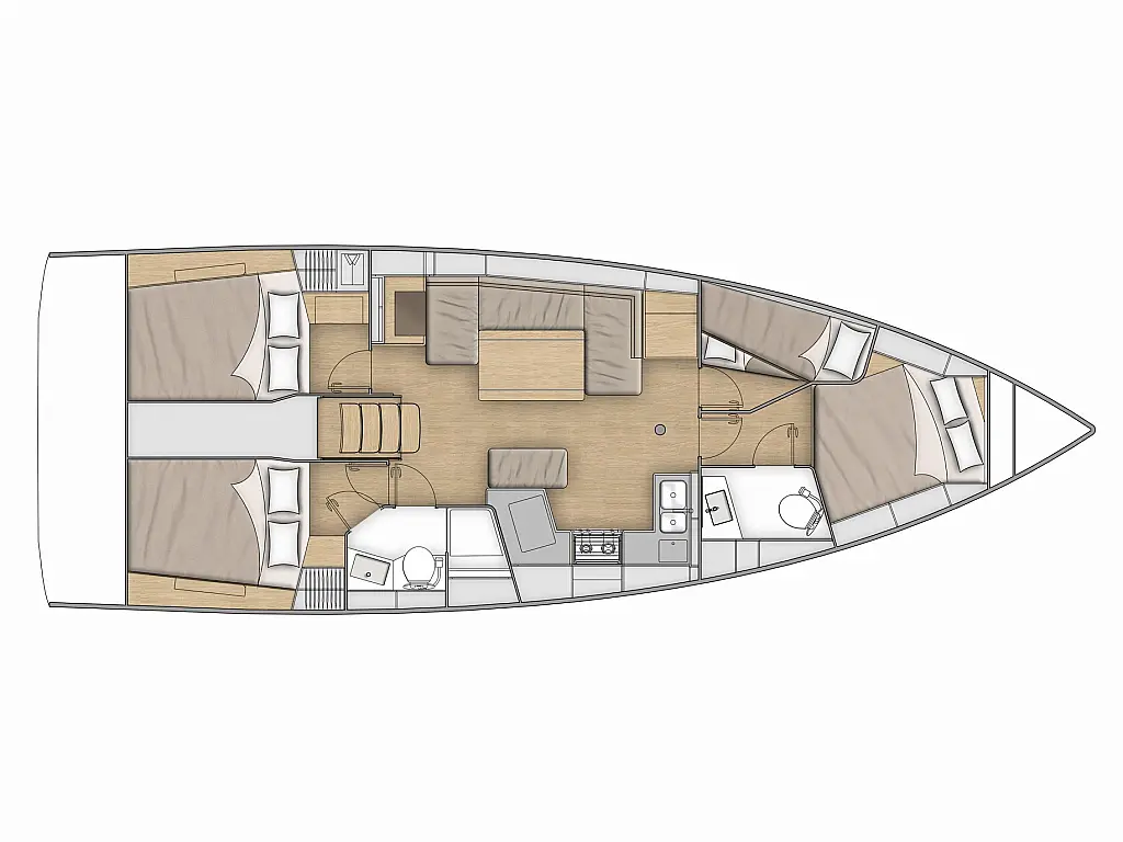 Sprayhood , Bimini , Holding tank , Cockpit cushions , Electric toilet , Swimming platform , Dinghy , Refrigerator