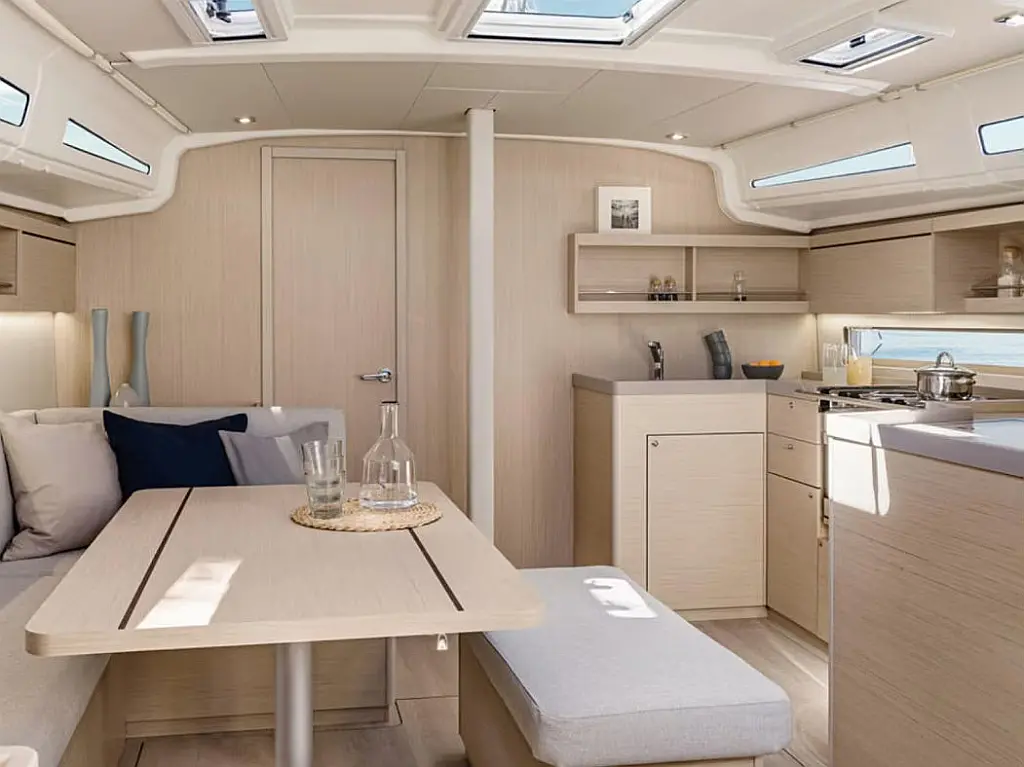 Refrigerator , Coffee maker , Bimini , Cockpit speakers , Cockpit cushions , Dinghy