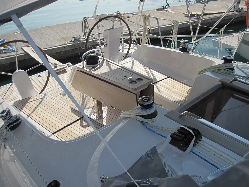 Refrigerator , Dinghy , Bimini , Cockpit speakers , Holding tank , Sprayhood , Swimming platform , Cockpit cushions , Electric toilet