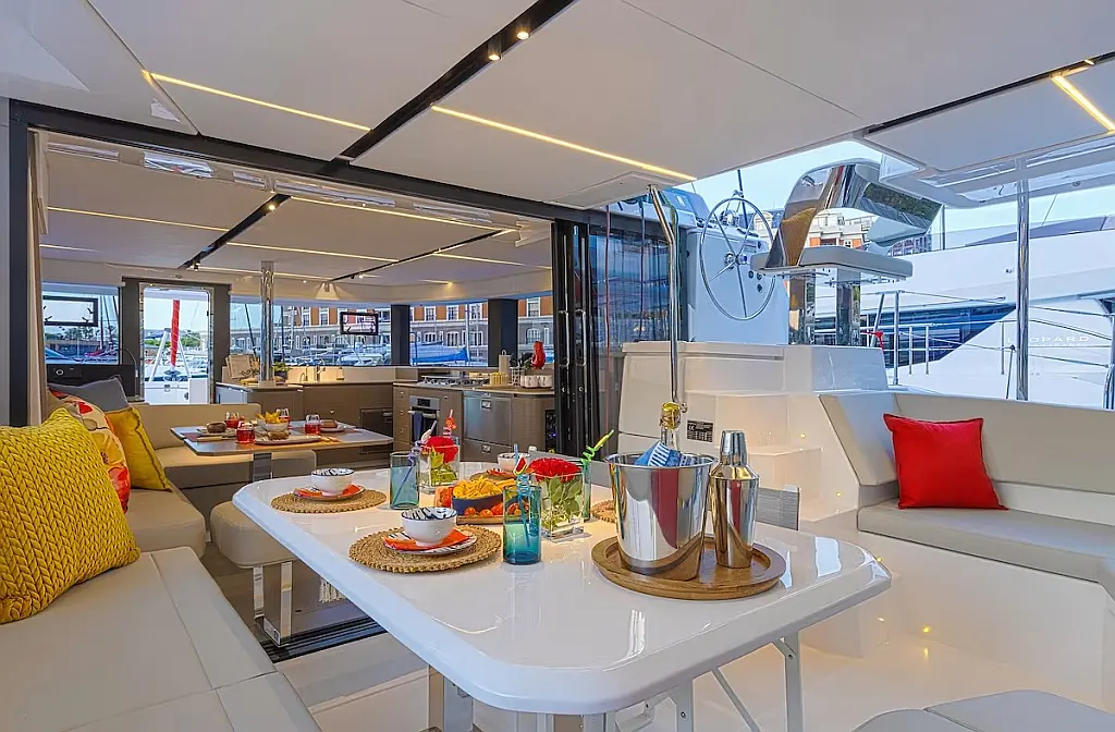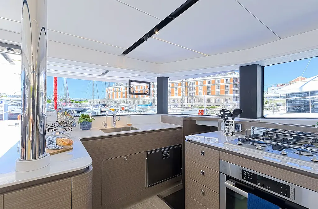 Barbecue grill in cockpit , Cockpit cushions , Electric winches , Bimini , Inverter , Air condition , Solar Panels , Electric toilet , Cockpit speakers , Generator , Water maker , Refrigerator