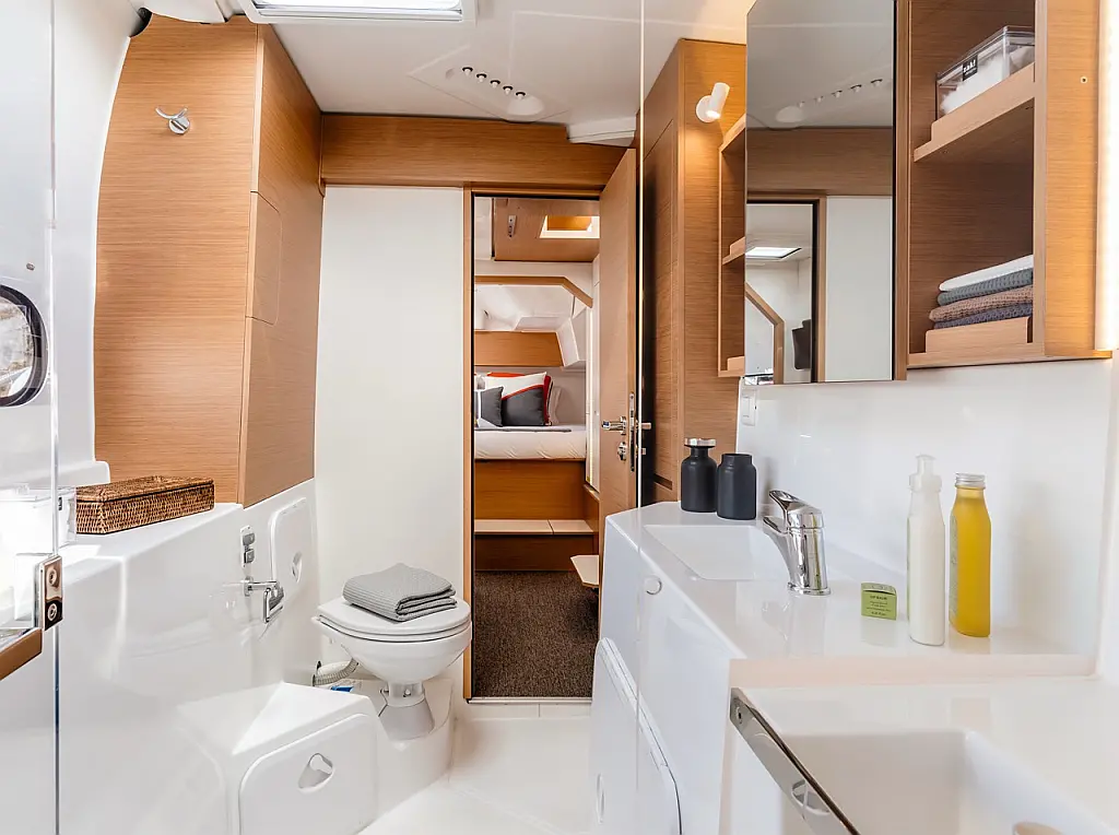 Refrigerator , Electric toilet , Electric winches , Inverter , Bimini , Cockpit cushions