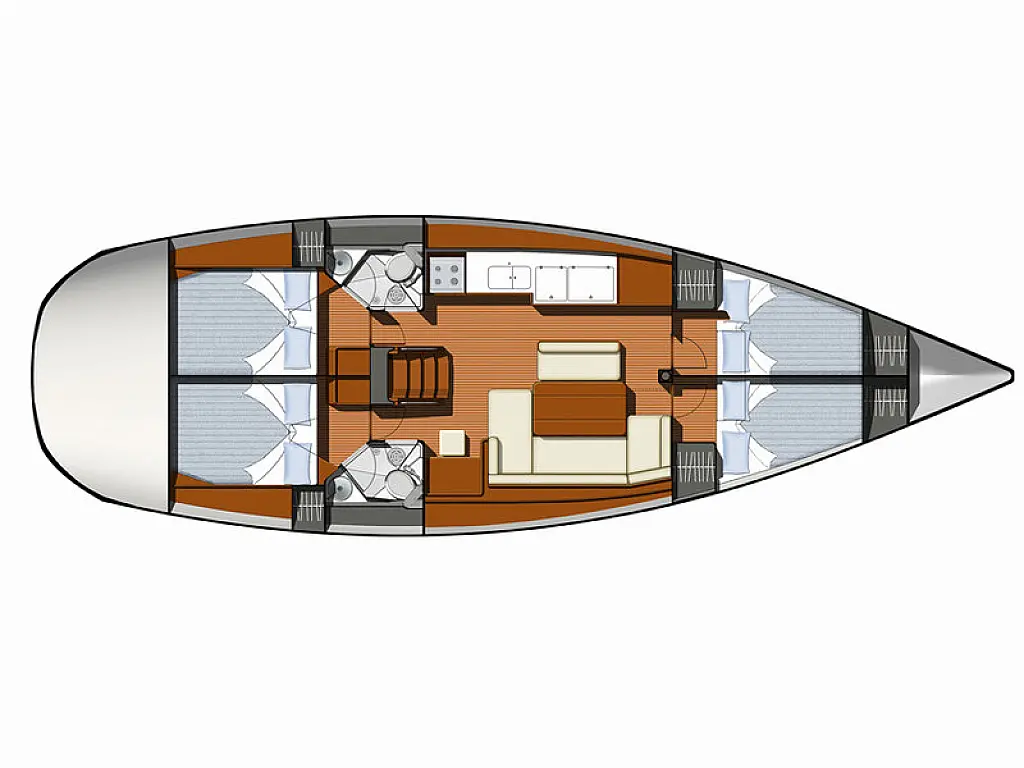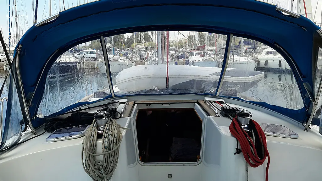 Refrigerator , Bimini , Dinghy , Sprayhood , Holding tank , Inverter , Cockpit cushions , Cockpit speakers , Solar Panels
